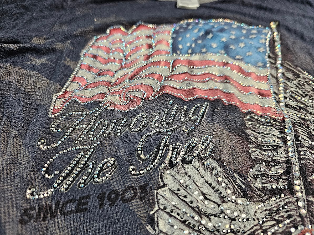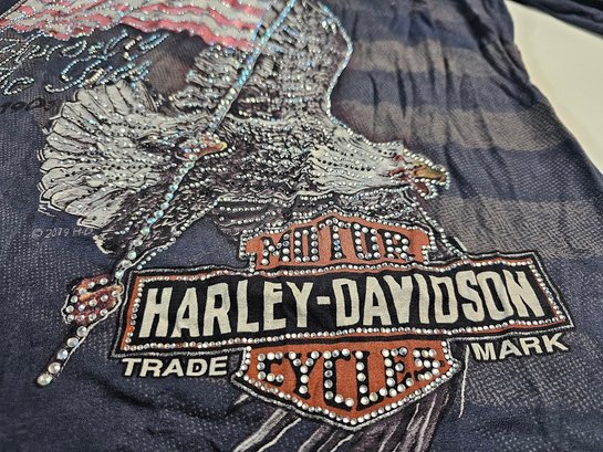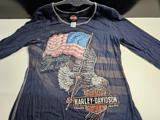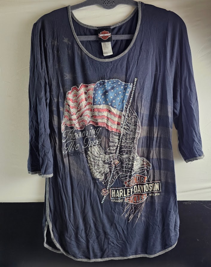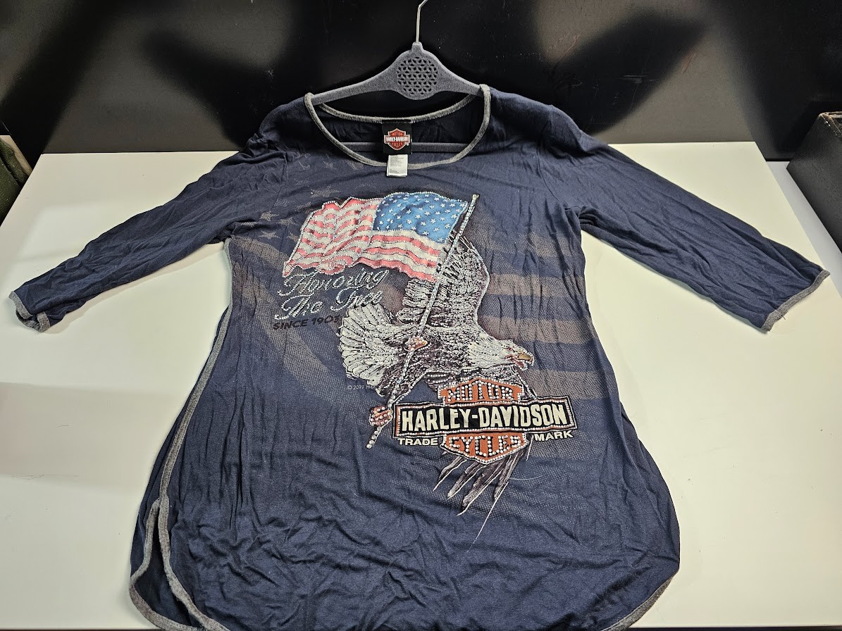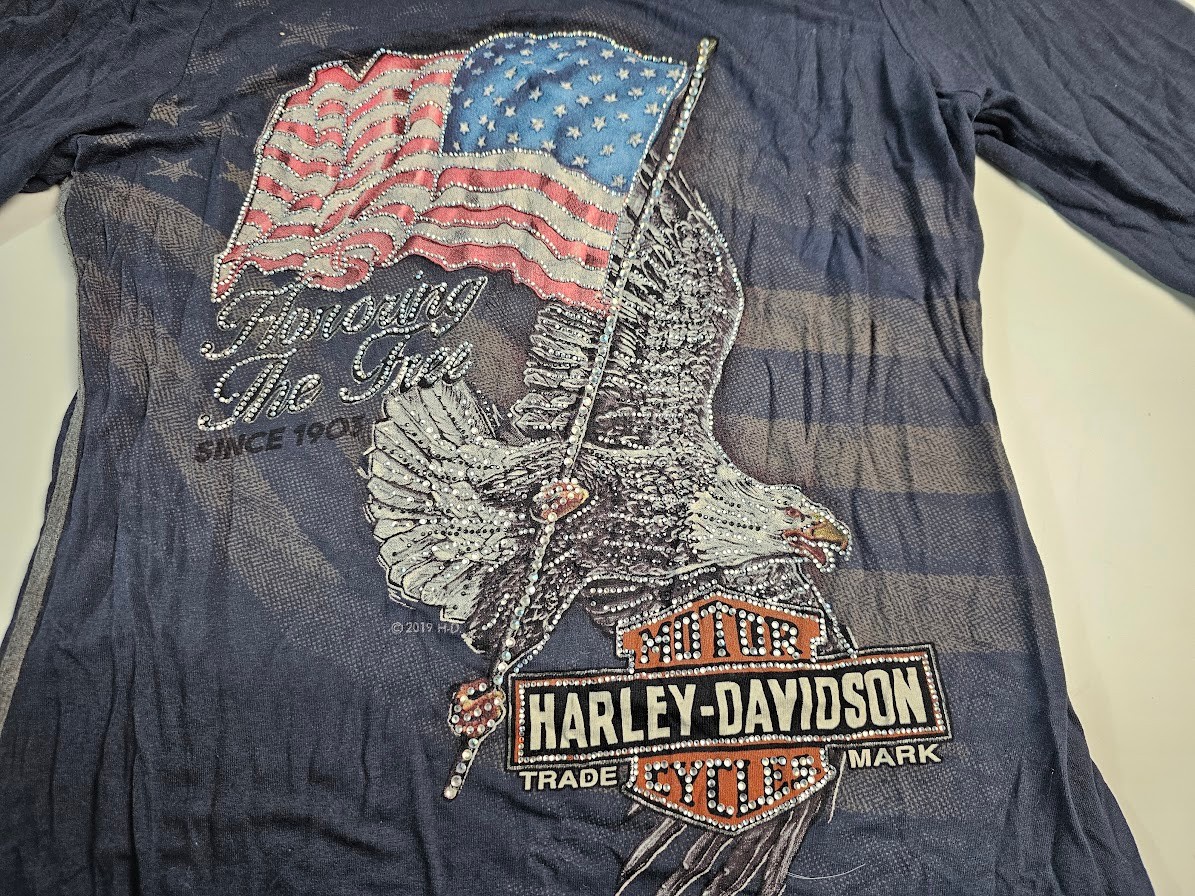 Eye catching with sparkling outlines, here's a great Harley Davidson womens 3/4 sleeve shirt