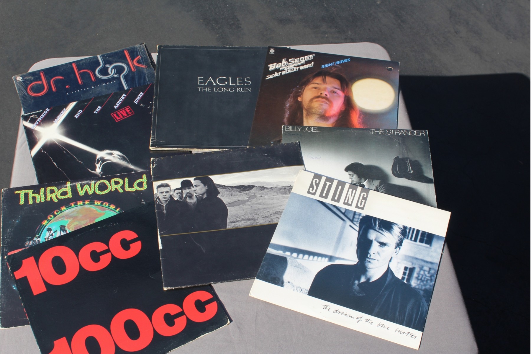 Excellent collection with U-2 - Joshua tree, Billy Joel - The Stranger, Sting - Dream of the blue turtles, 10CC - 100CC, Bob Seger - Night Moves, Southside Johnny and the Asbury Jukes - Live, Dr. Hook - A Little Bit More, Eagles - The Long Run, Third world - Rock the world (if you have not heard this group they are excellent), 9 in all, I have cleaned all of them and they range from good to very good condition all playable.