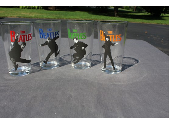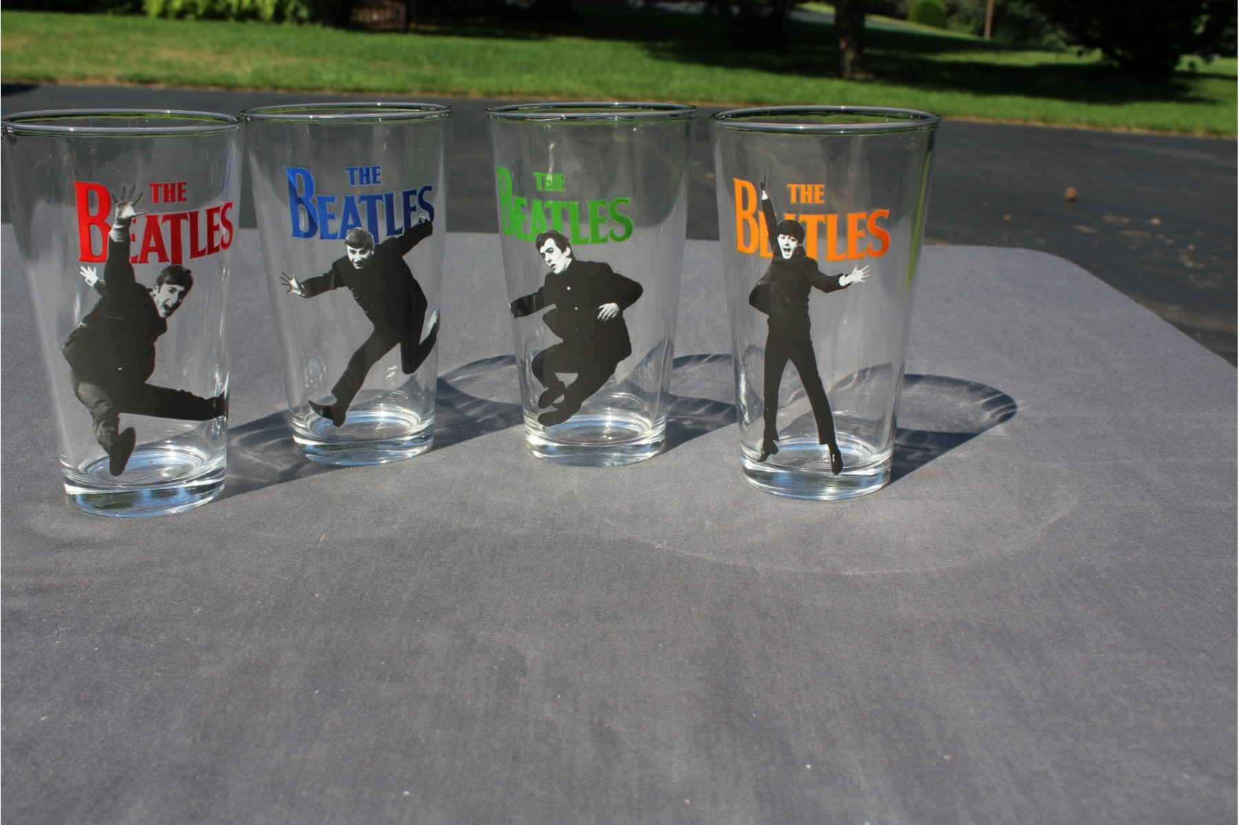 Not vintage but from 2013. This 4 piece set of 16 oz. glasses. Each glass has one member of the band on it, each a different color font. From Vandor LLC, no chips no cracks