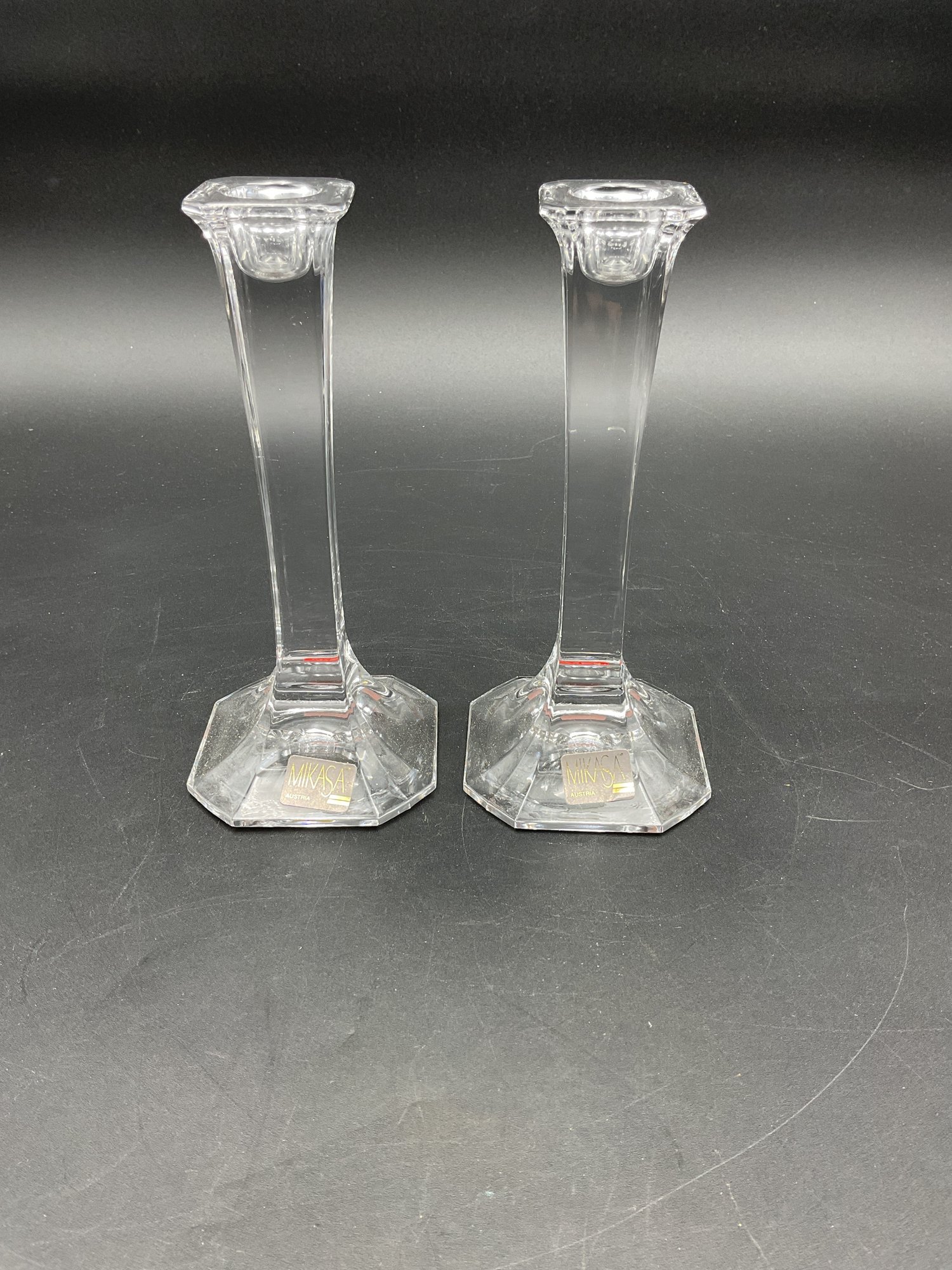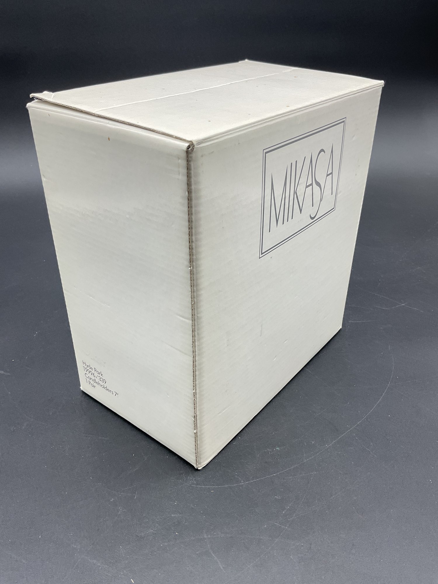 Beautiful Hyde Park candleholders from Mikasa, new in box with all original stickers intact. Made in Austria. Likely mid-90's vintage, retired design. Excellent condition.
