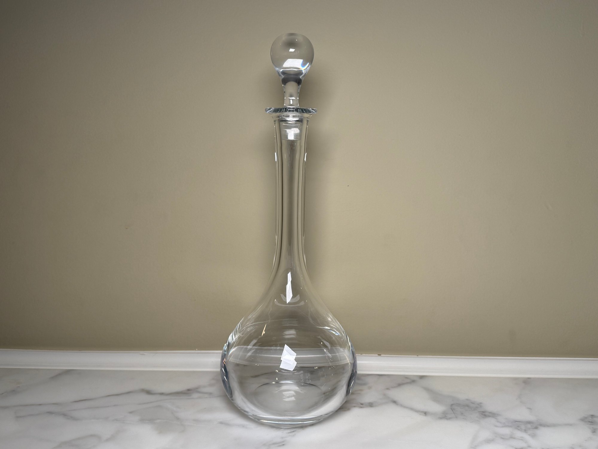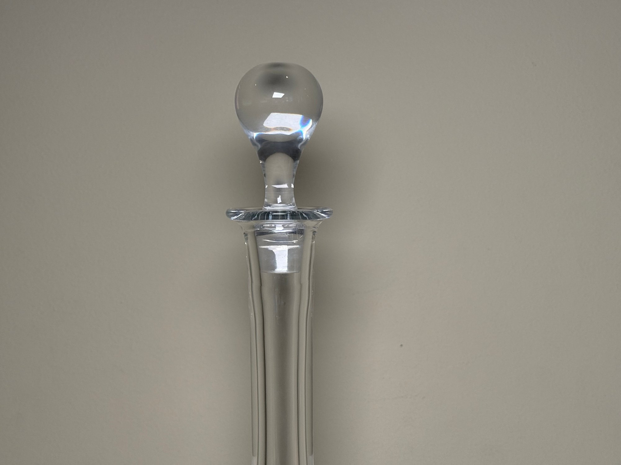 Refined and minimalist, this Baccarat crystal decanter features a sleek, elongated neck rising from a gently rounded base, topped with a fitted crystal stopper. The clean lines and exceptional clarity highlight Baccarat’s celebrated craftsmanship and timeless design aesthetic.