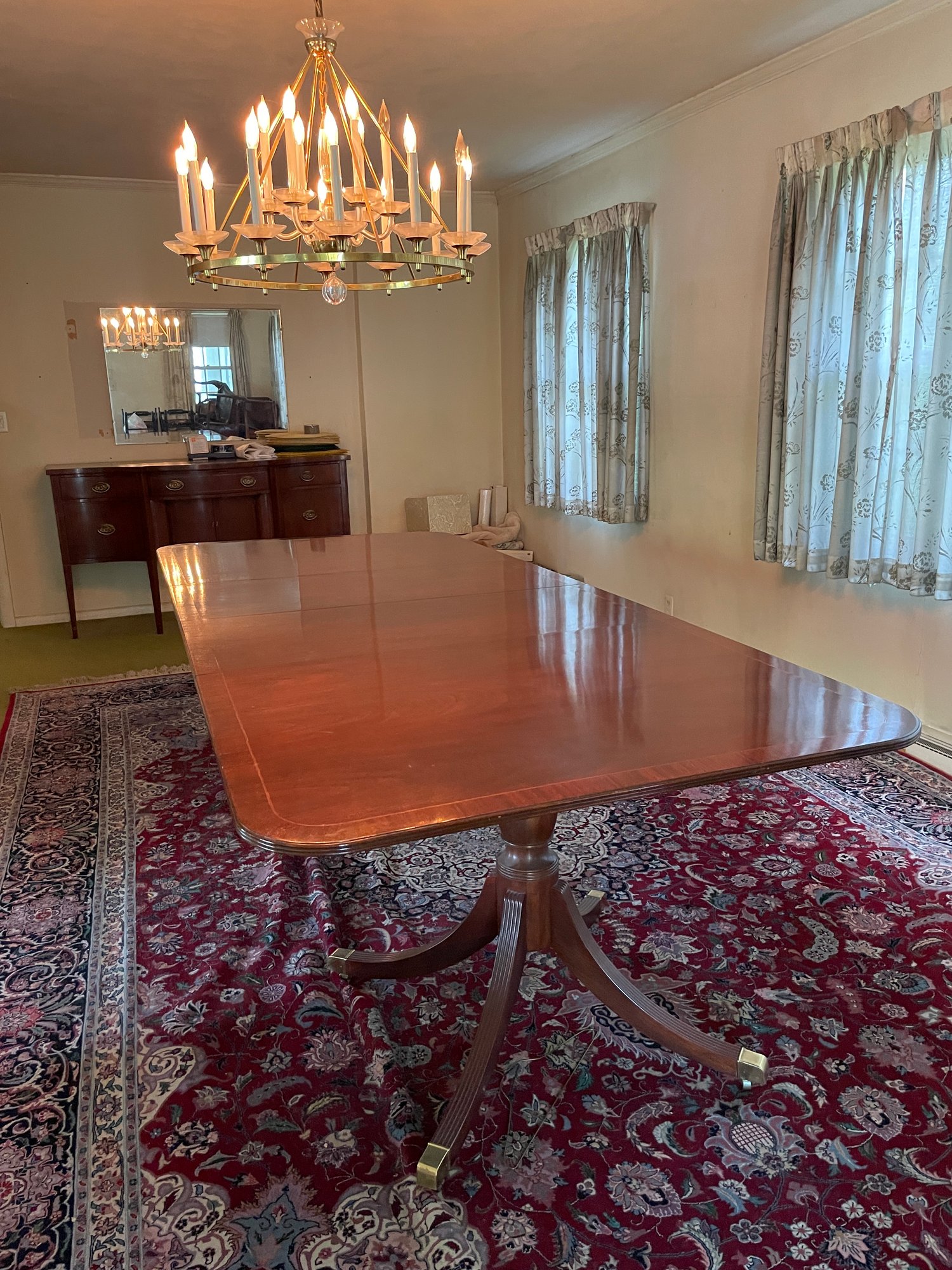 Baker Historic Charleston l Federal Style Extendable Dining table measures 68" (108" wide with the leaves) X 46" X 28.5". Two leaves measure 20".