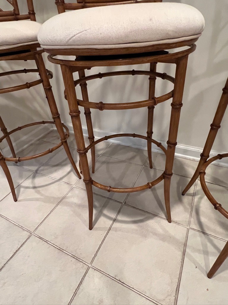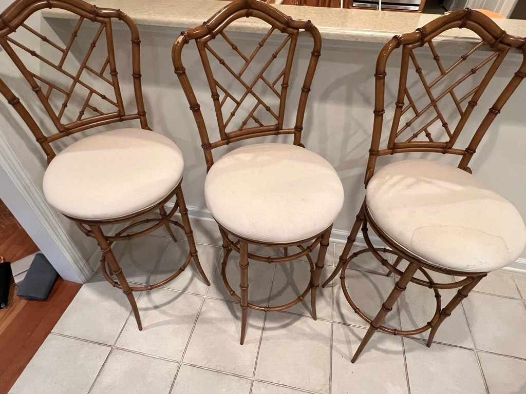 matching 3 bar stools, 47" h x 28"h x seat x 17"