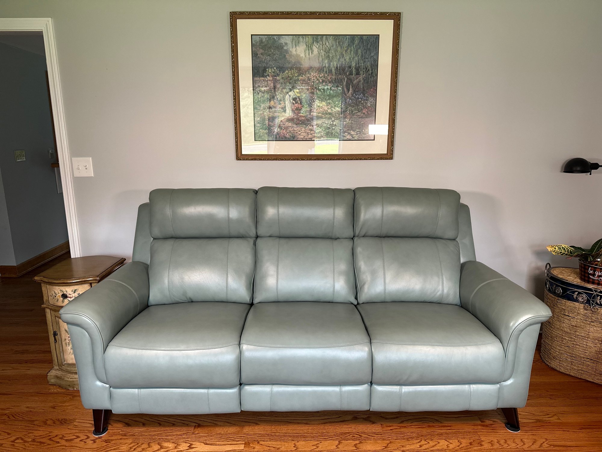 This stunning leather reclining sofa is a wall hugger so you can put it right against the wall and still recline