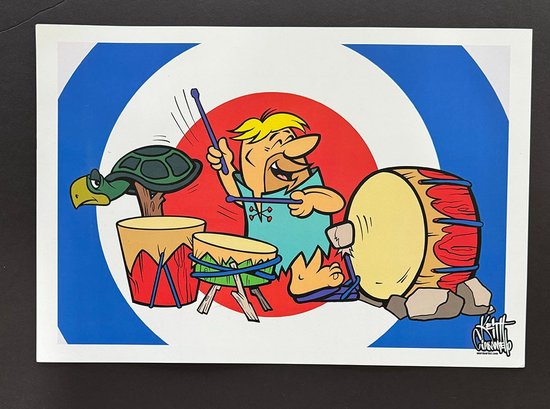 Barny Flintstones on Drums by Keith Caramellio Iris Print