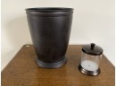 Faux bronze wastebasket and small canister, perfect for cotton swabs or cotton balls.
