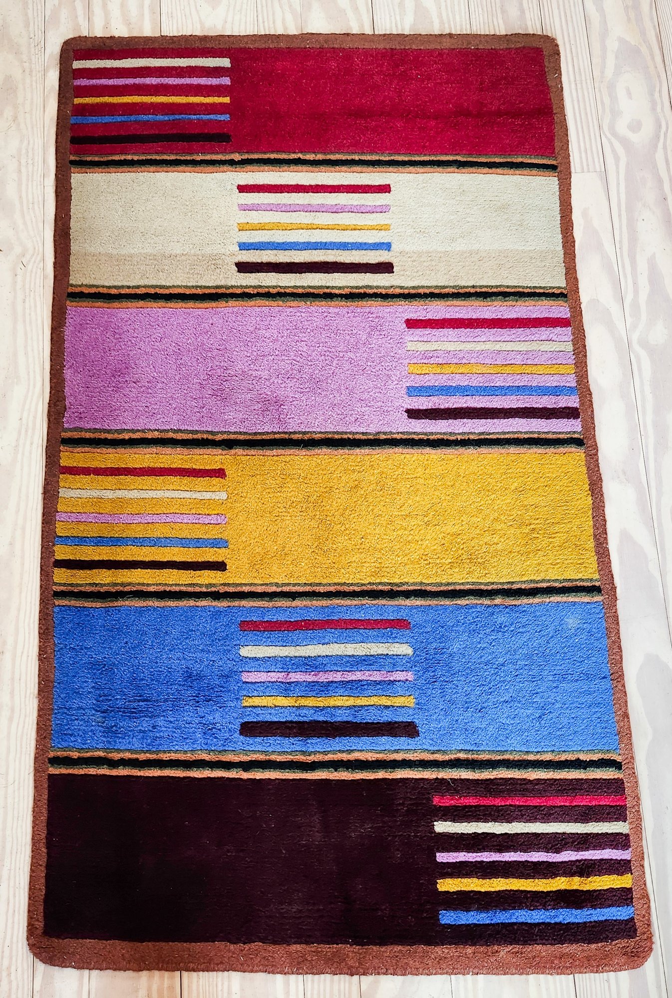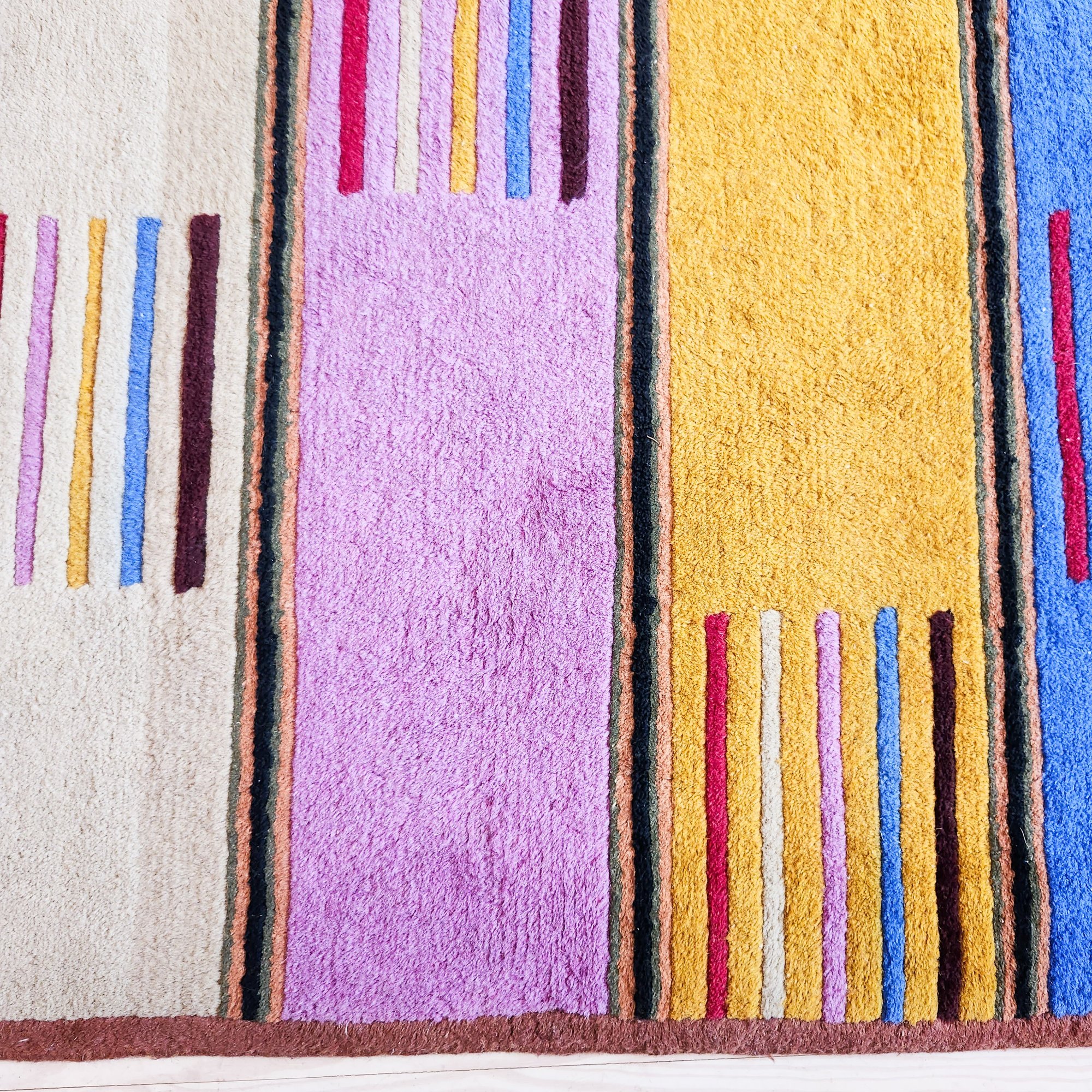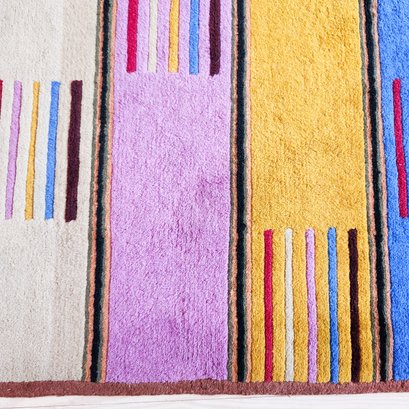 Pretty and bright colored entryway size rug with a very fun and playful design.