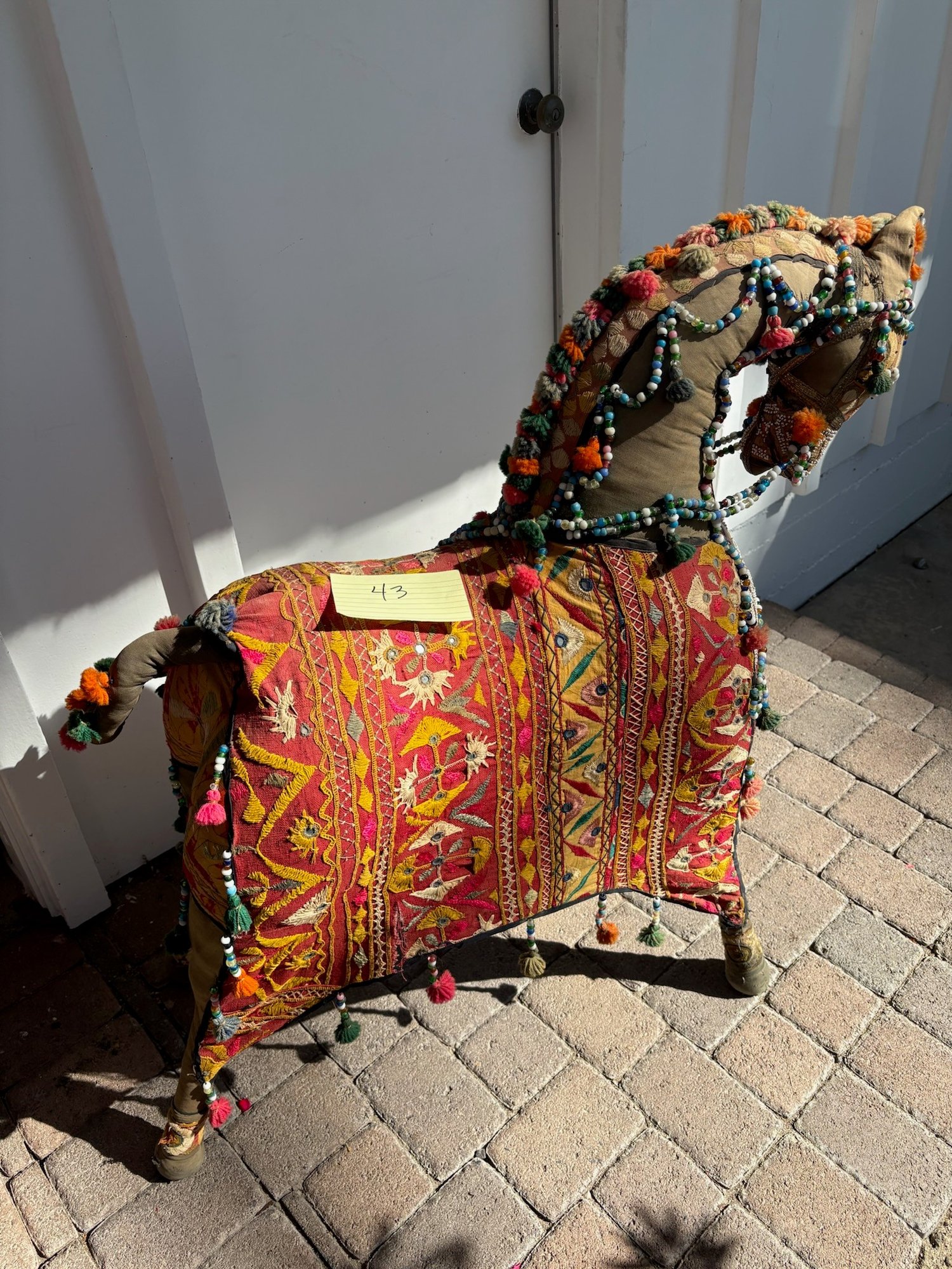 Elaborately beaded substantial stuffed horse. South Asian in style.
