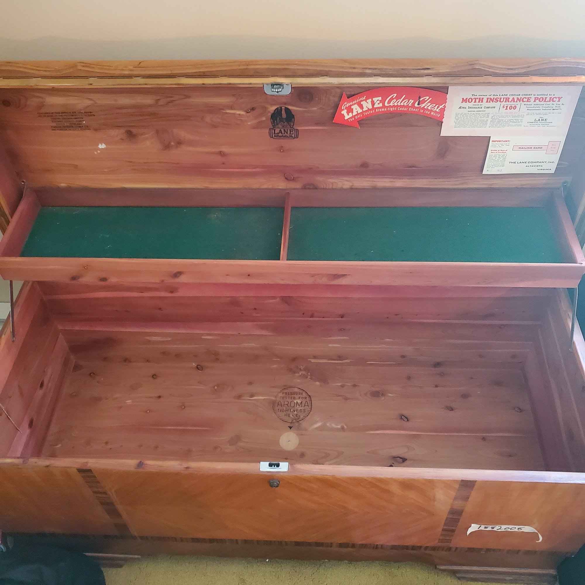 Lovely Vintage Lane cedar chest circa 1947, Great for storing all your woolen & linen items, blankets, winter clothes during the summer. In beautiful condition. PLEASE NOTE- the contents inside are not included for sale in THIS LOT!