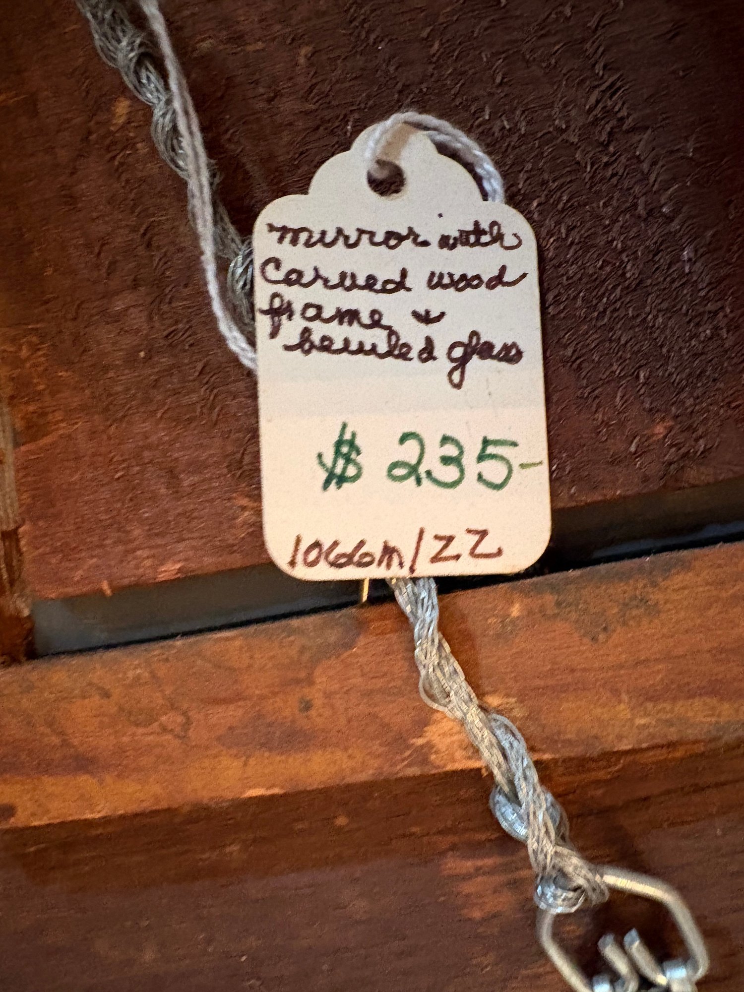 Beautiful antique beveled glass carved wood framed wall mirror.