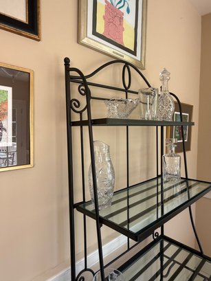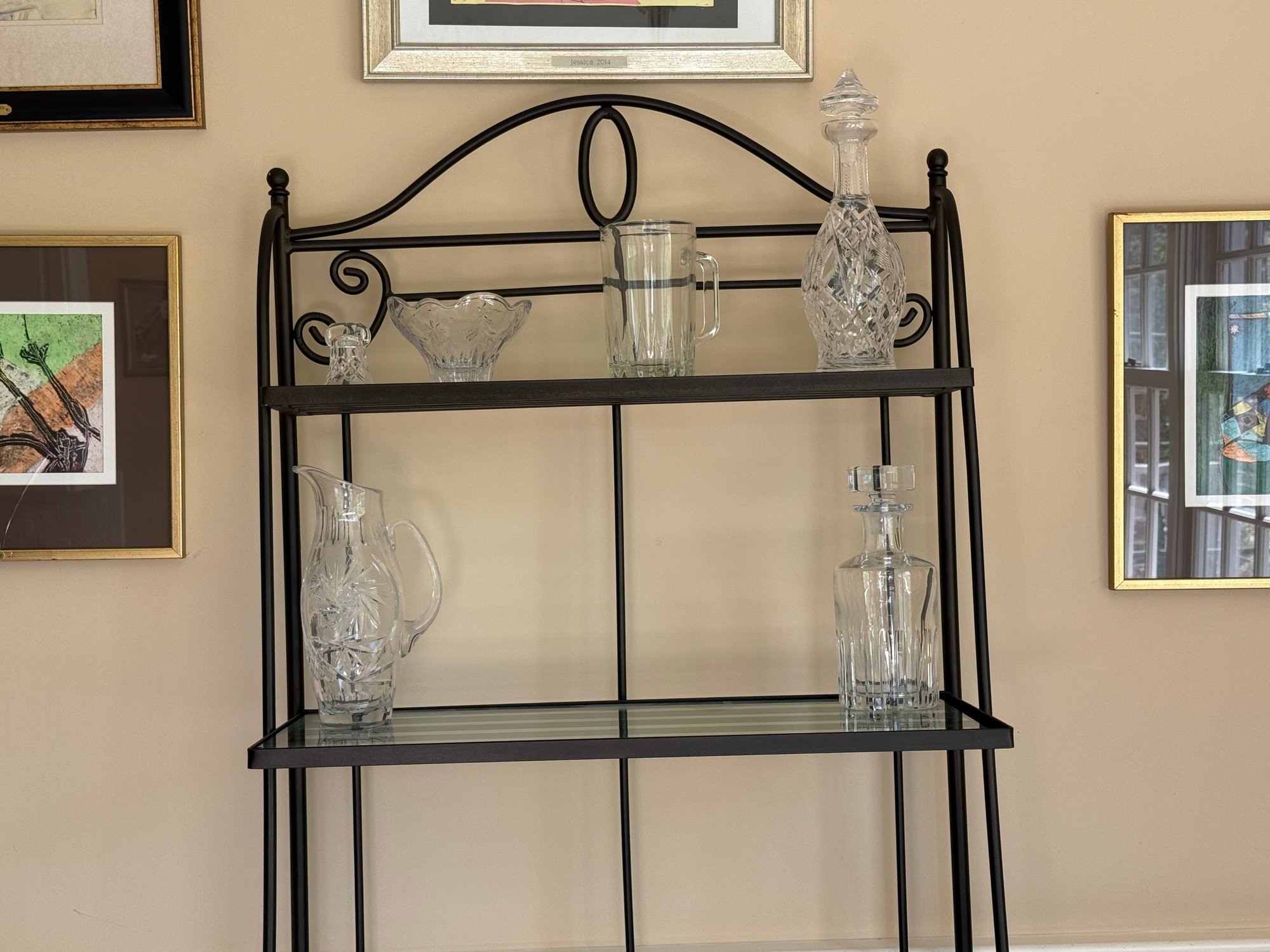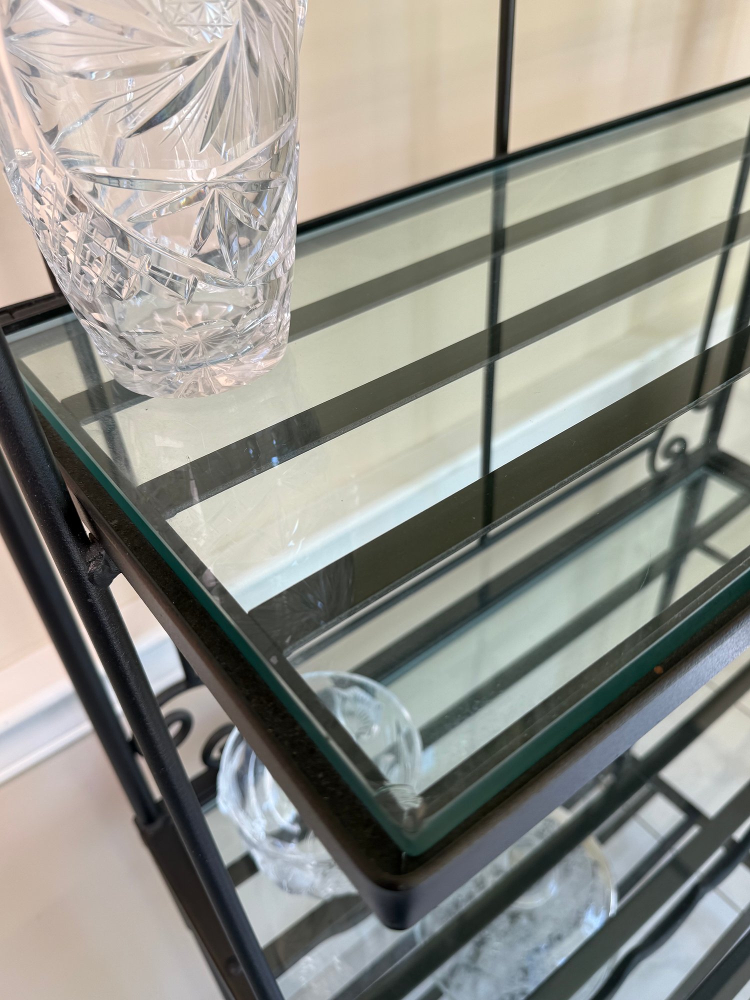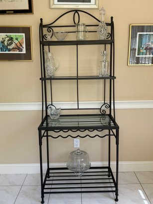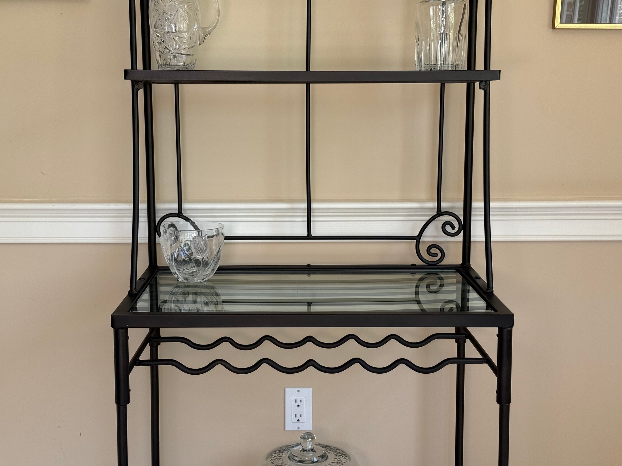 This beautiful quality made black metal bakers rack has wonderful character to it. It has four shelves, for plenty of storage space.