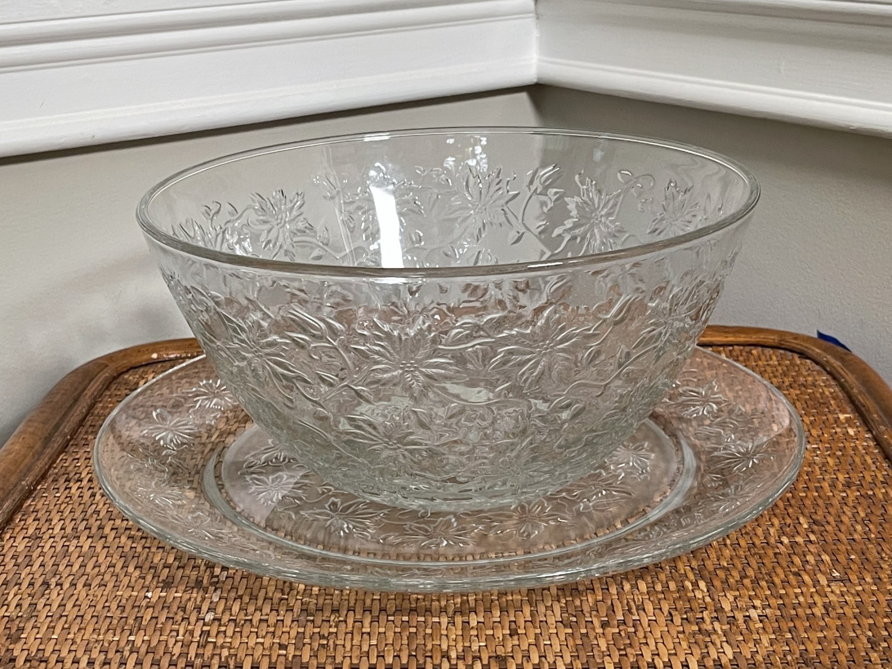 A lovely serving bowl & plate with a pretty pattern. Perfect for entertaining. There are no cracks or chips detected. Deriving platter has a 13 inch diameter and serving bowl has a 10.5 inch diameter.