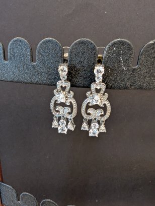 These are a pair of elegant chandeliers drop earrings featuring a complex, intricate design often associated with Art Deco or Edwardian/Victorian revival styles.