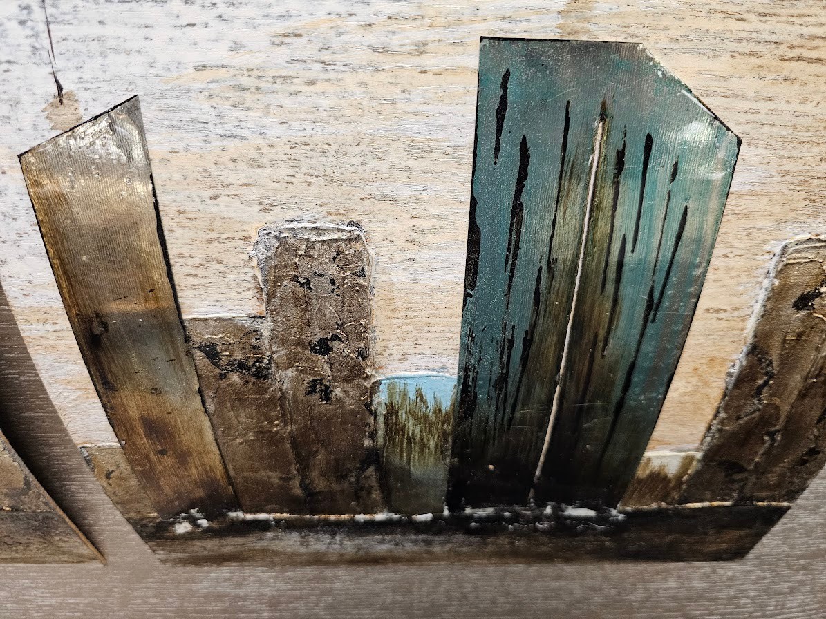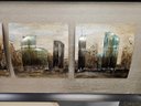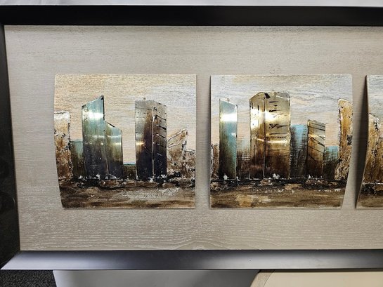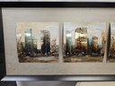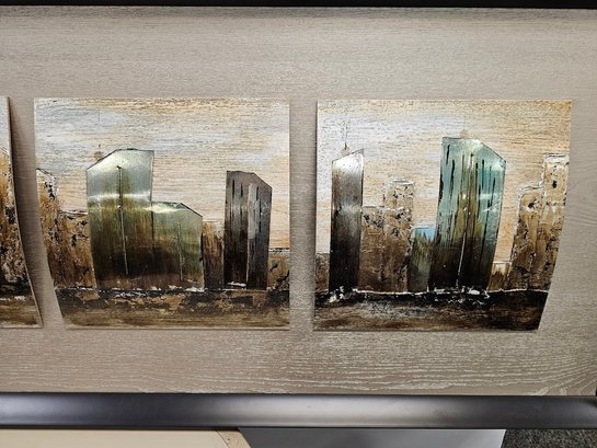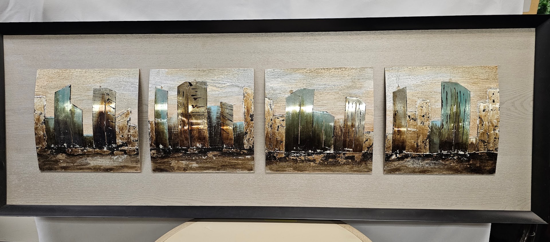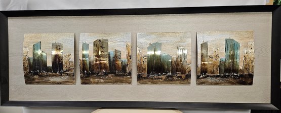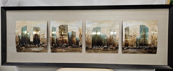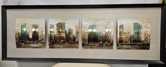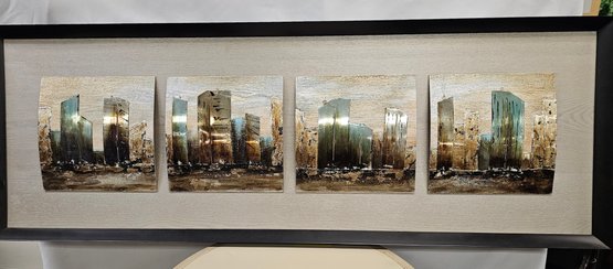 Beautiful framed textured cityscape art piece set in the style of the "Golden Metropolis"