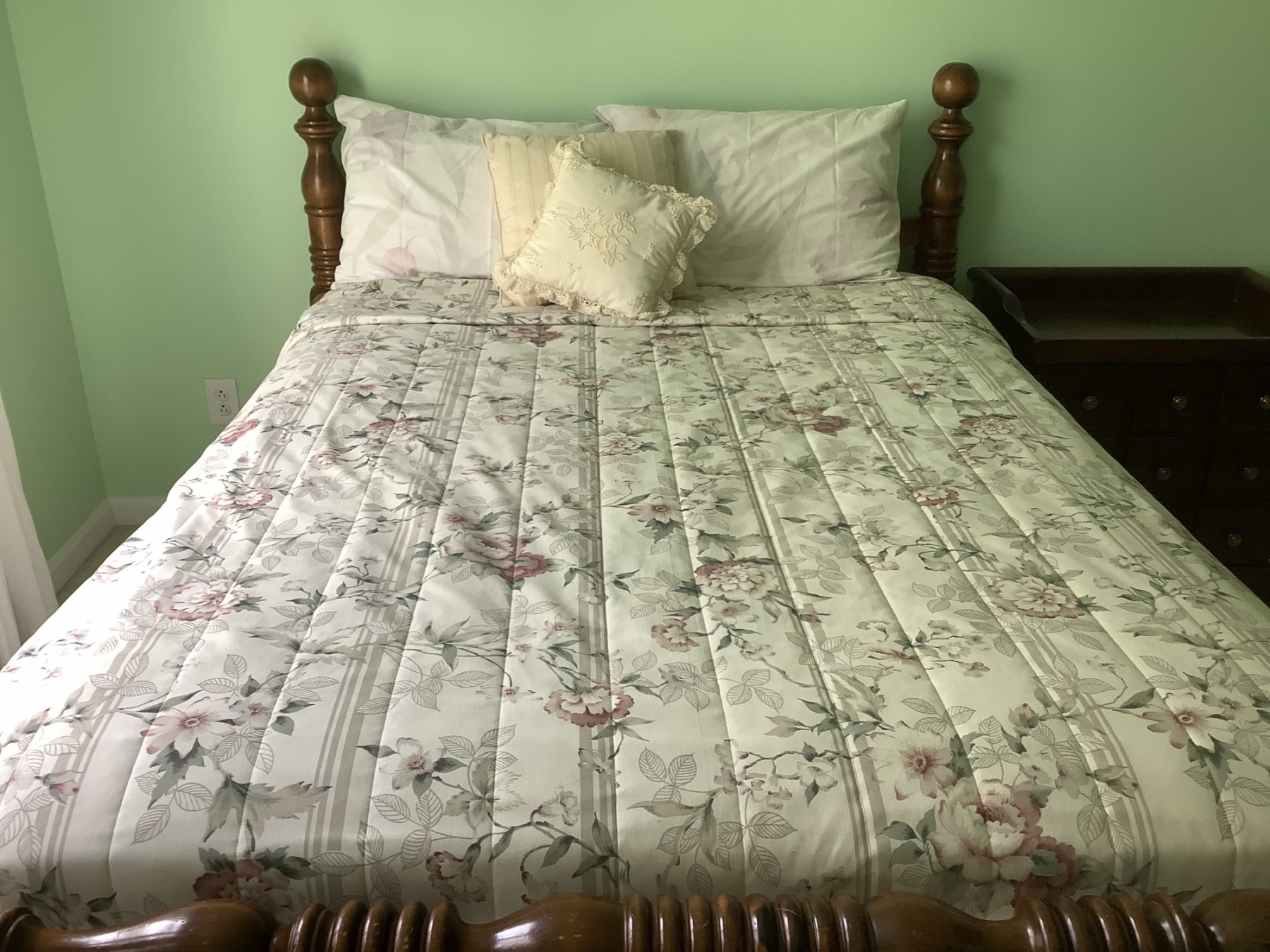 Beautiful Full Floral Bedspread With Delicate Trim And Pillows As Pictured