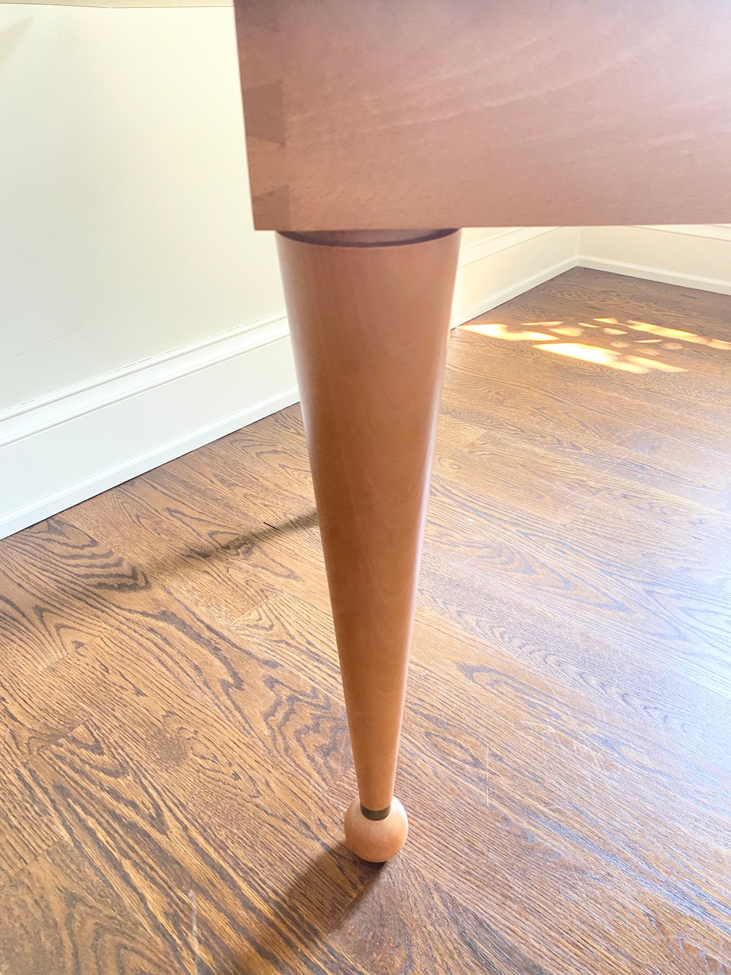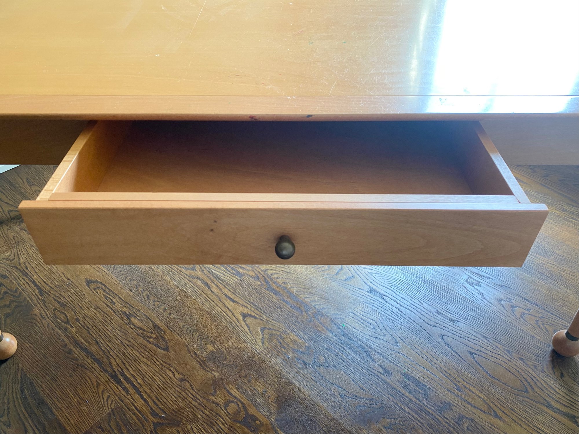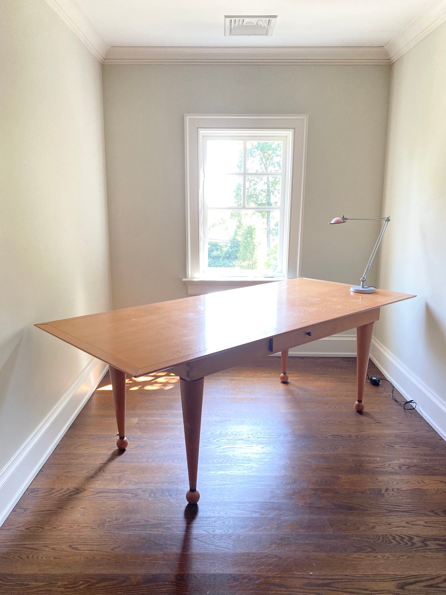 Has been lightly used as a work table and there are areas of paint marks that come off when scratched with finger