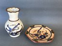 A beautiful Mexican potter vase and plate. These are quality made and heavy weighted. They are both marked "Mexico" on the bottom.