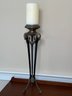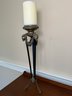 This stunning candle stand is very heavy weighted and quality made. The rams heads are incorporated into the design. Intended as a decorative piece.