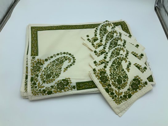 This is a set of 6 attractive placemats with matching napkins in cotton. Most in great condition, 2 placemats have pink stains on the back that are not very visible as can be seen in the photos. Two of the napkins also show minor signs of use.