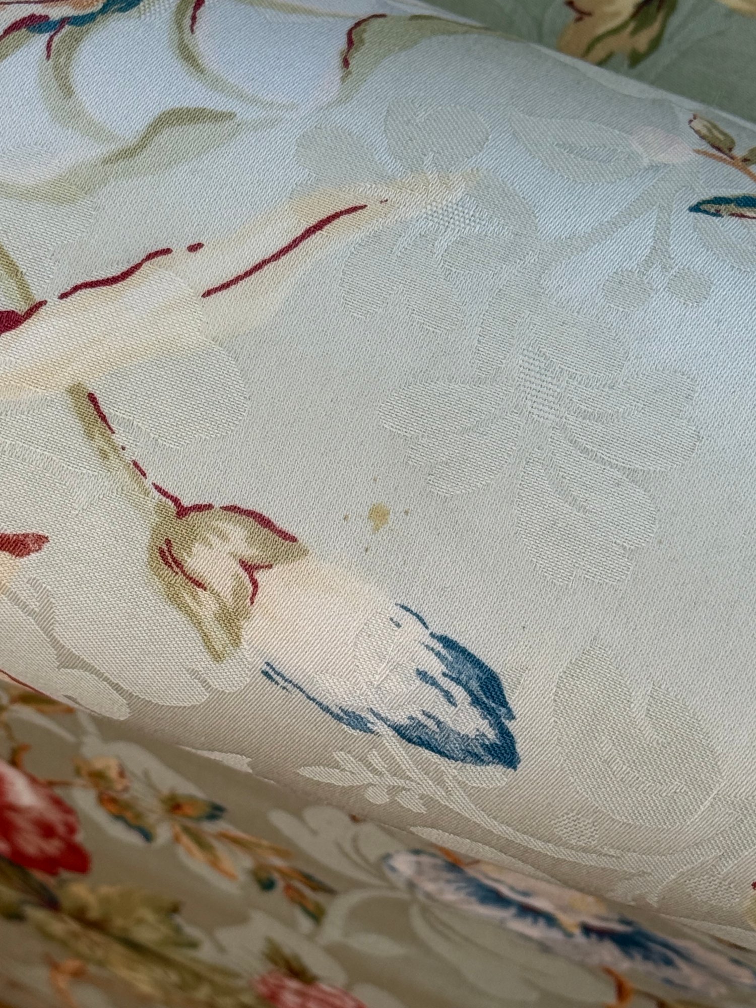 One small stain on arm. There is a matching chair and ottoman in separate lot in case you would like to bid on both.