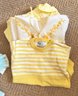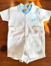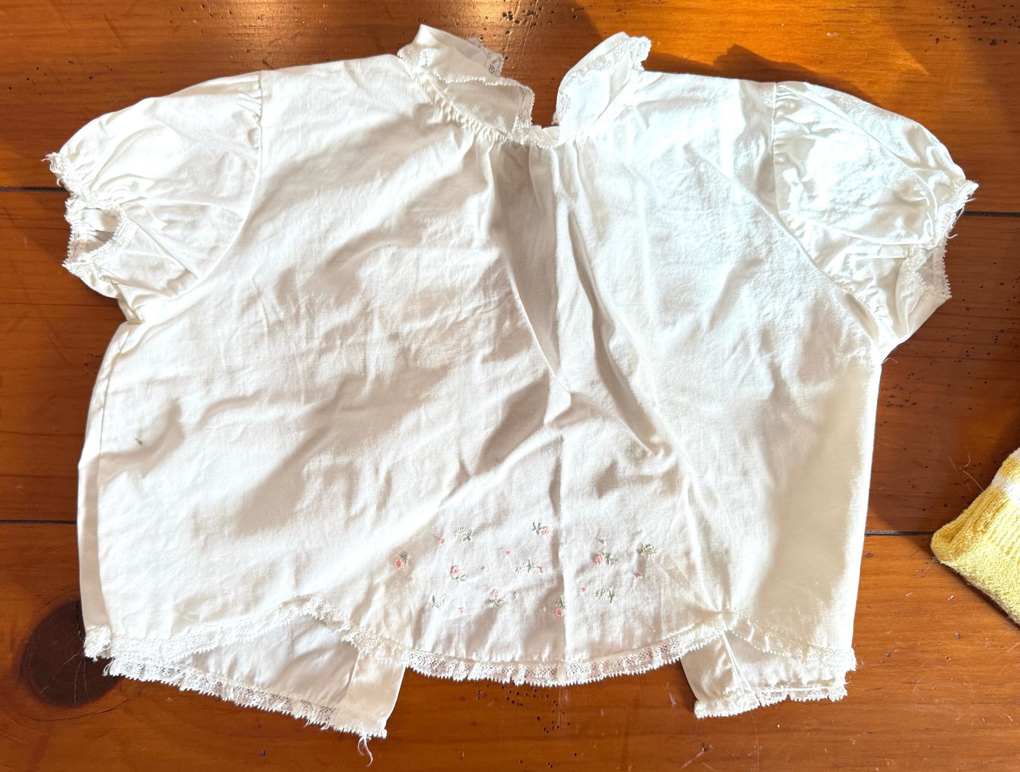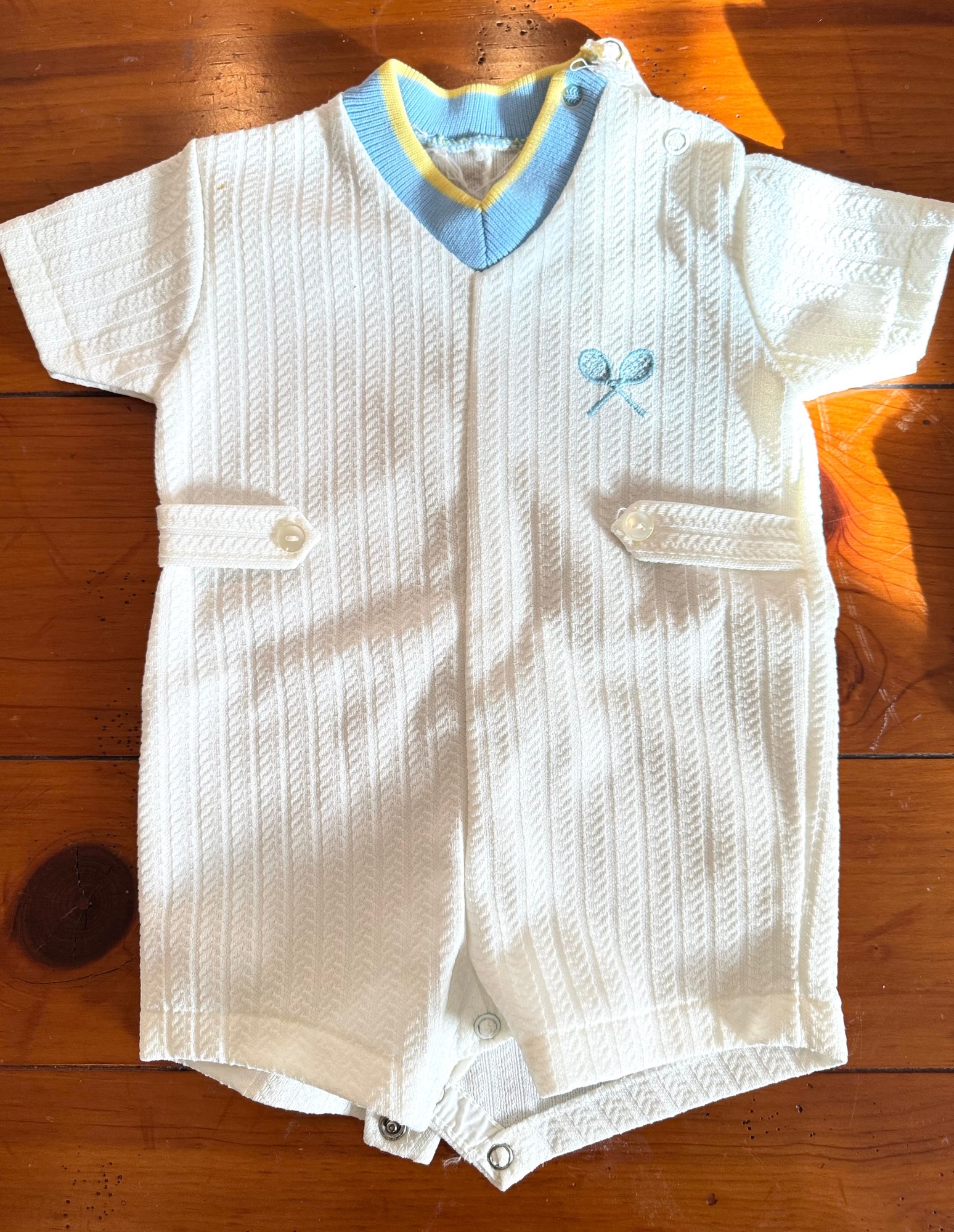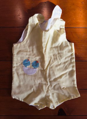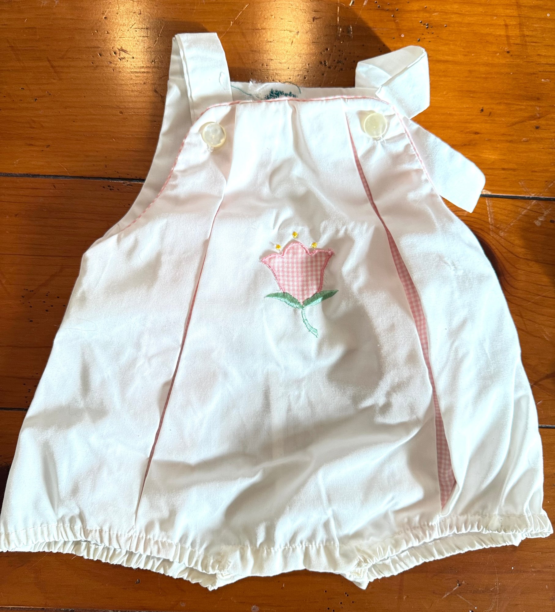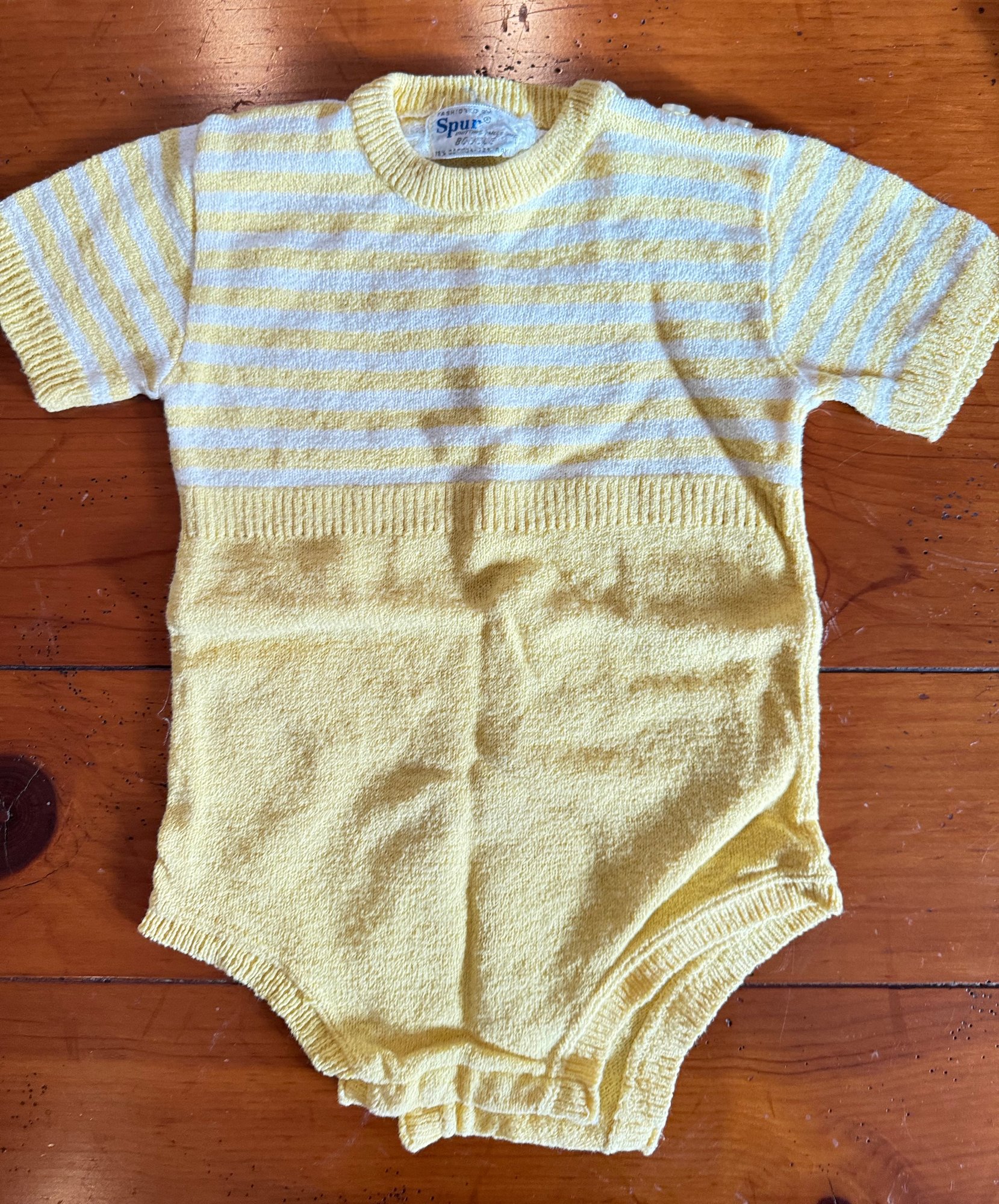 In multi color pastels in everything from sunsuits to lounge coats :) an adorable assortment of vintage babys clothes.