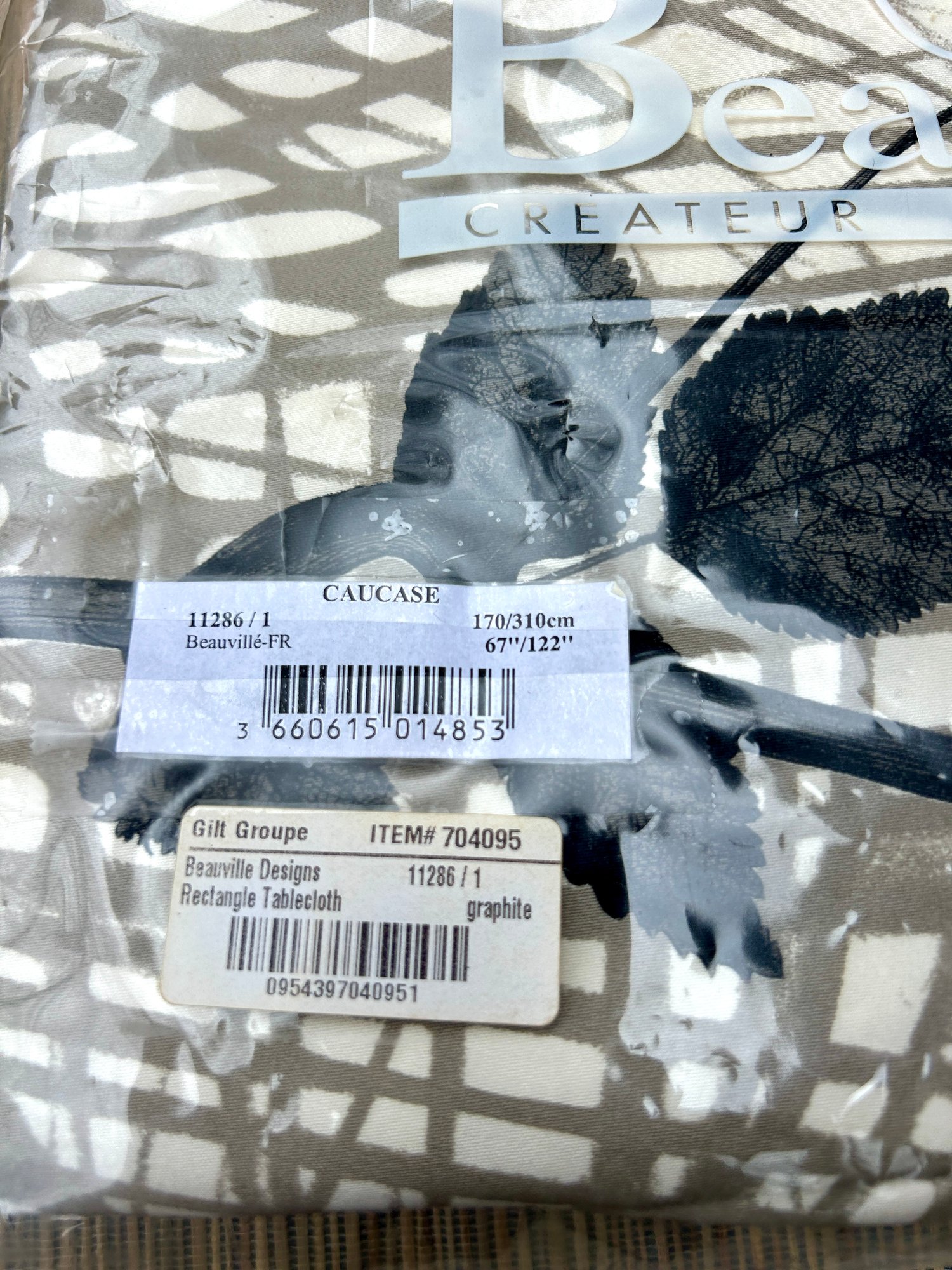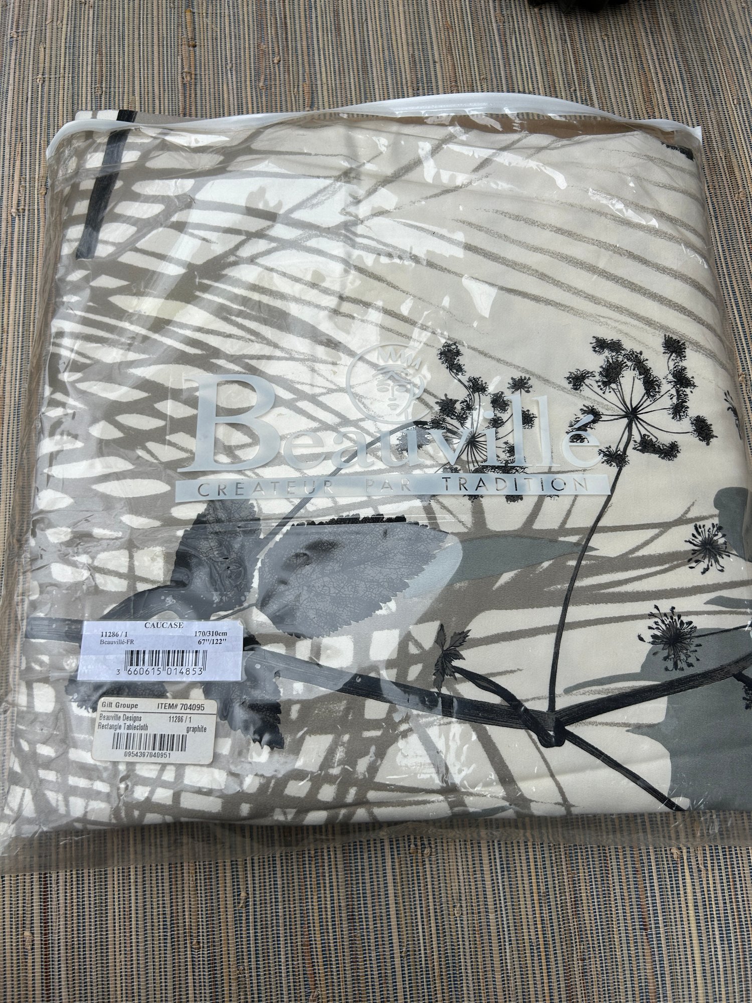 67" x 122" Beauville Caucase Rectangle tablecloth in graphite'