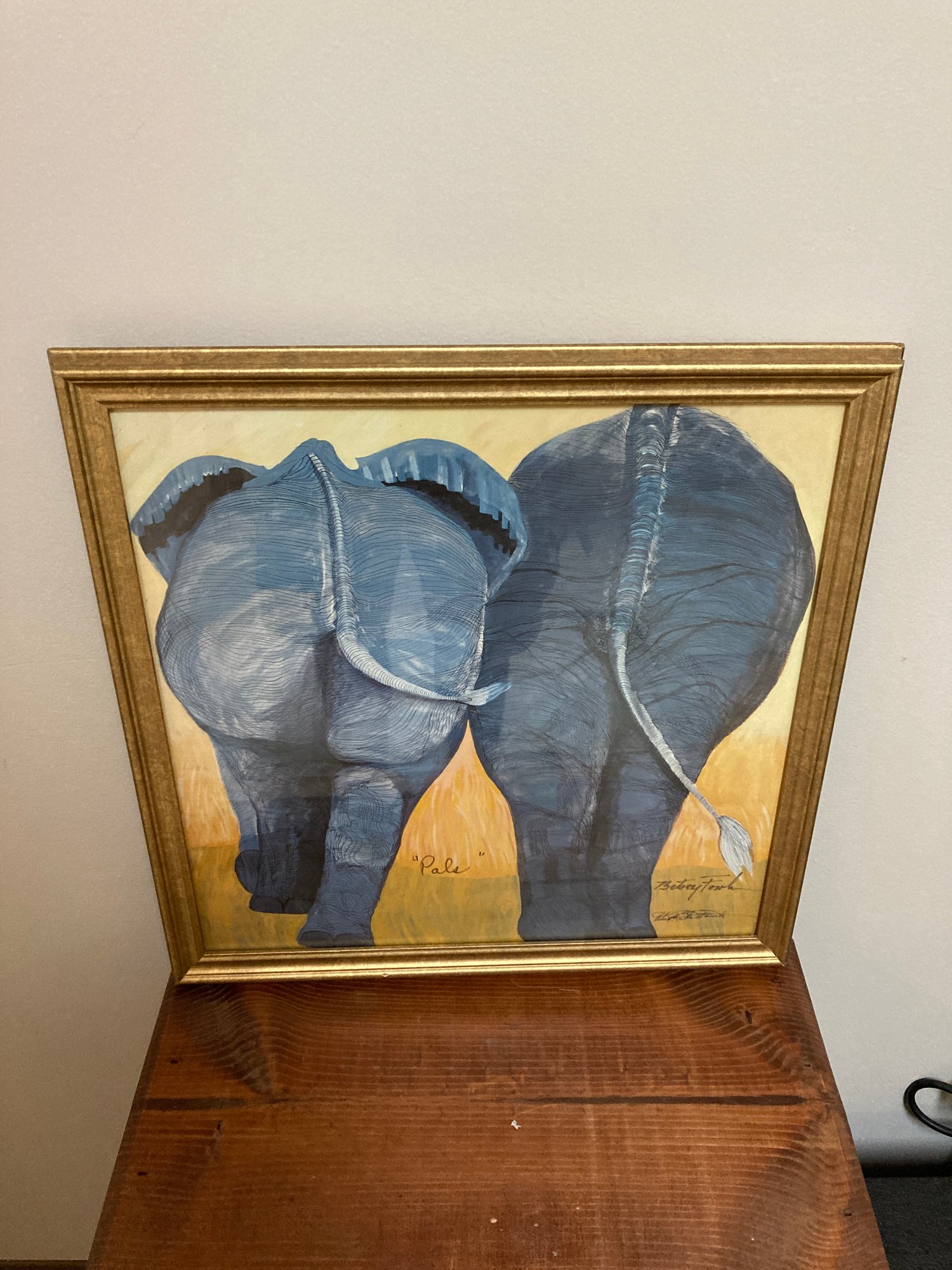 signed print , framed behind glass