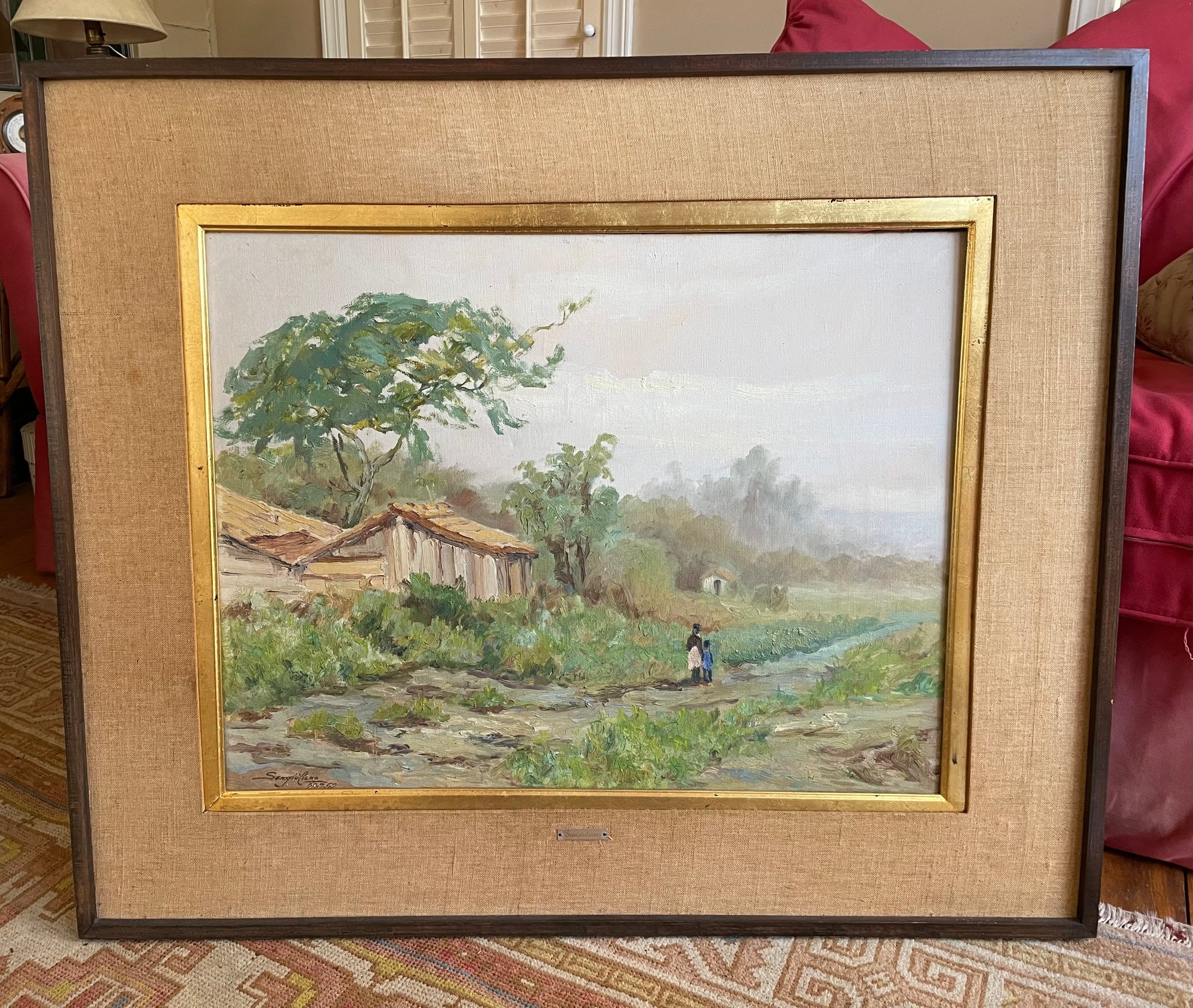 "Ibirapuera", a location in Brazil, now a park. The painting is signed on the lower left and has information on the back as well. The frame measures 36" by 30" and the painting measures 25" by 19 1/2".