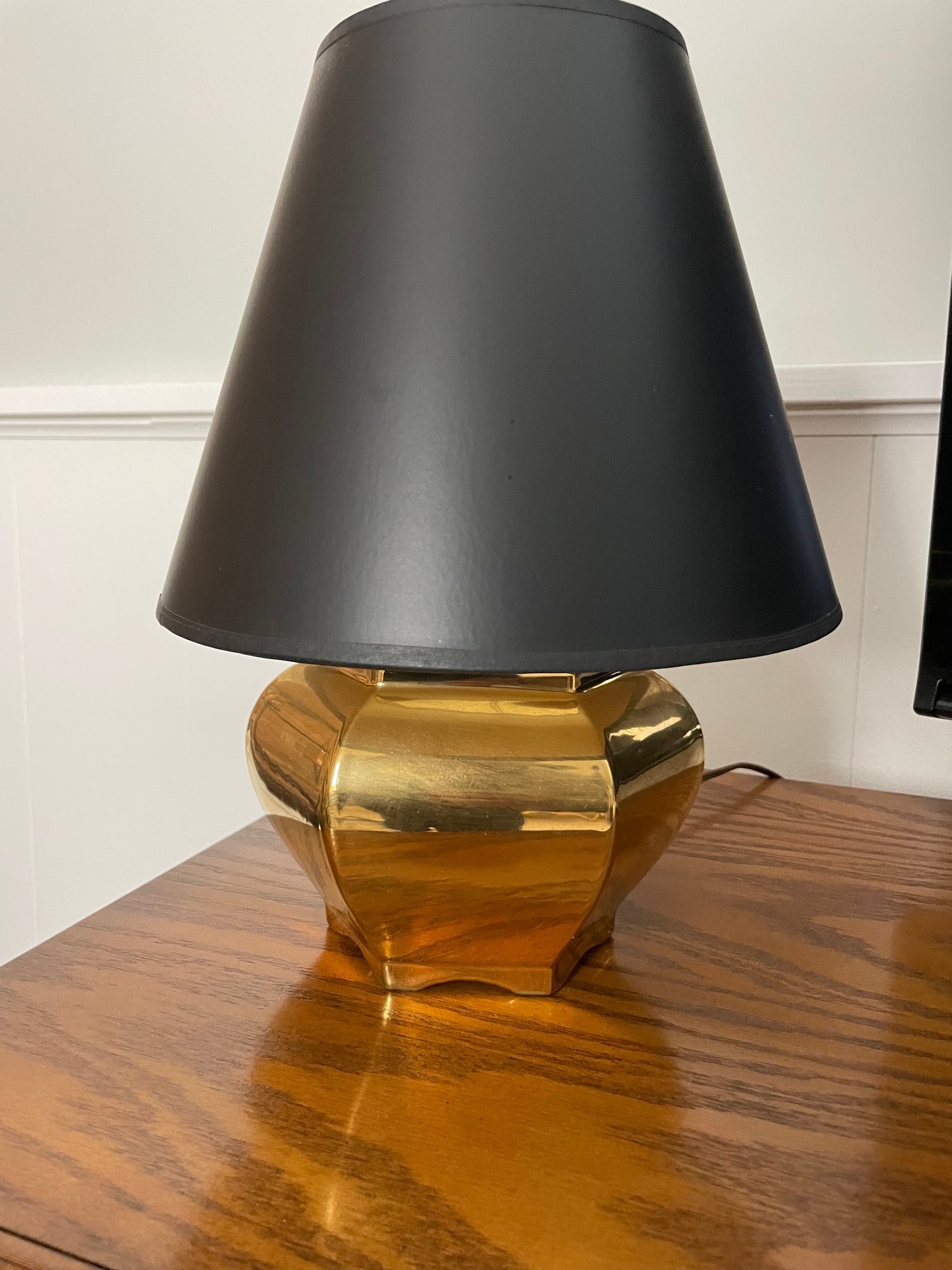 Electrical plug in. Black shade, gold colored bottom. Few minimal scratches seen in images. No other damages seen in images. See photos for more conditions and sizing.