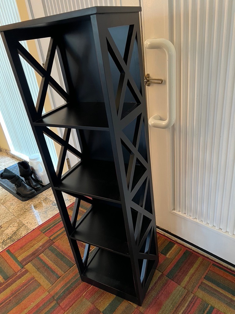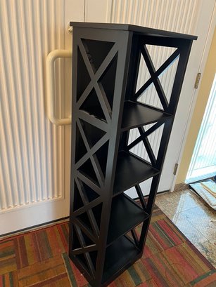 black wood etagere, super size, great storage, kitchen, den, bath, entryway, closet, office,