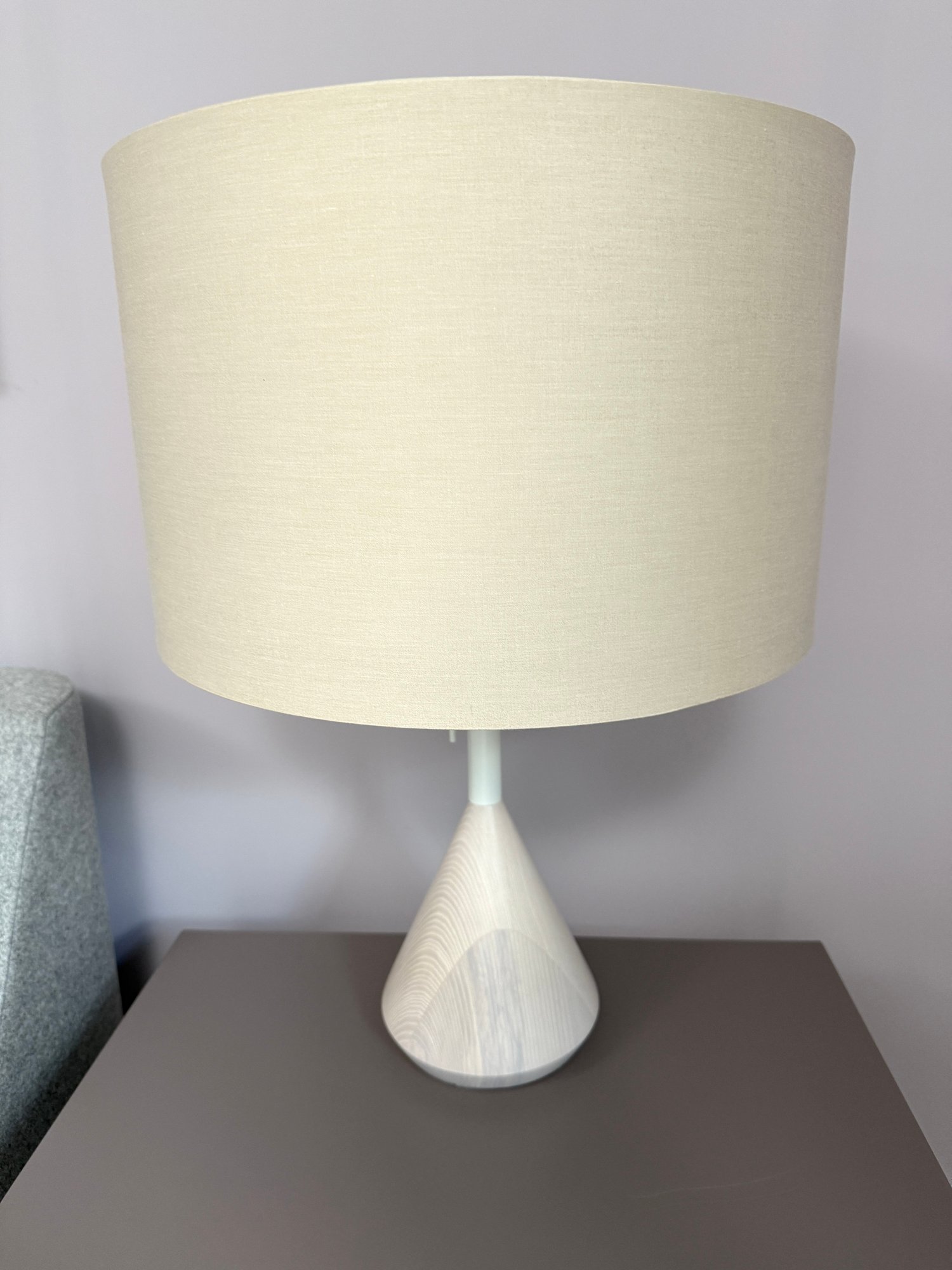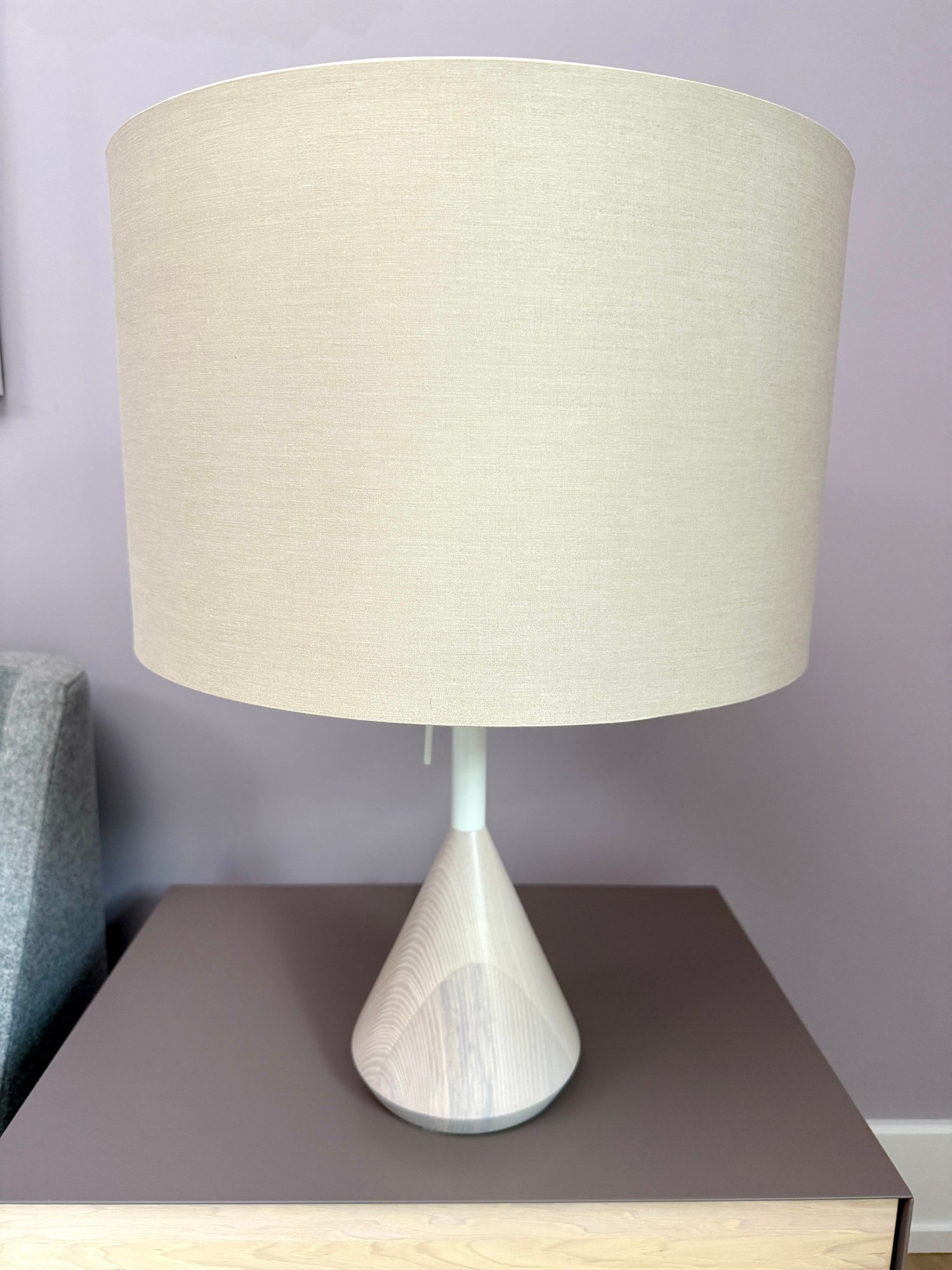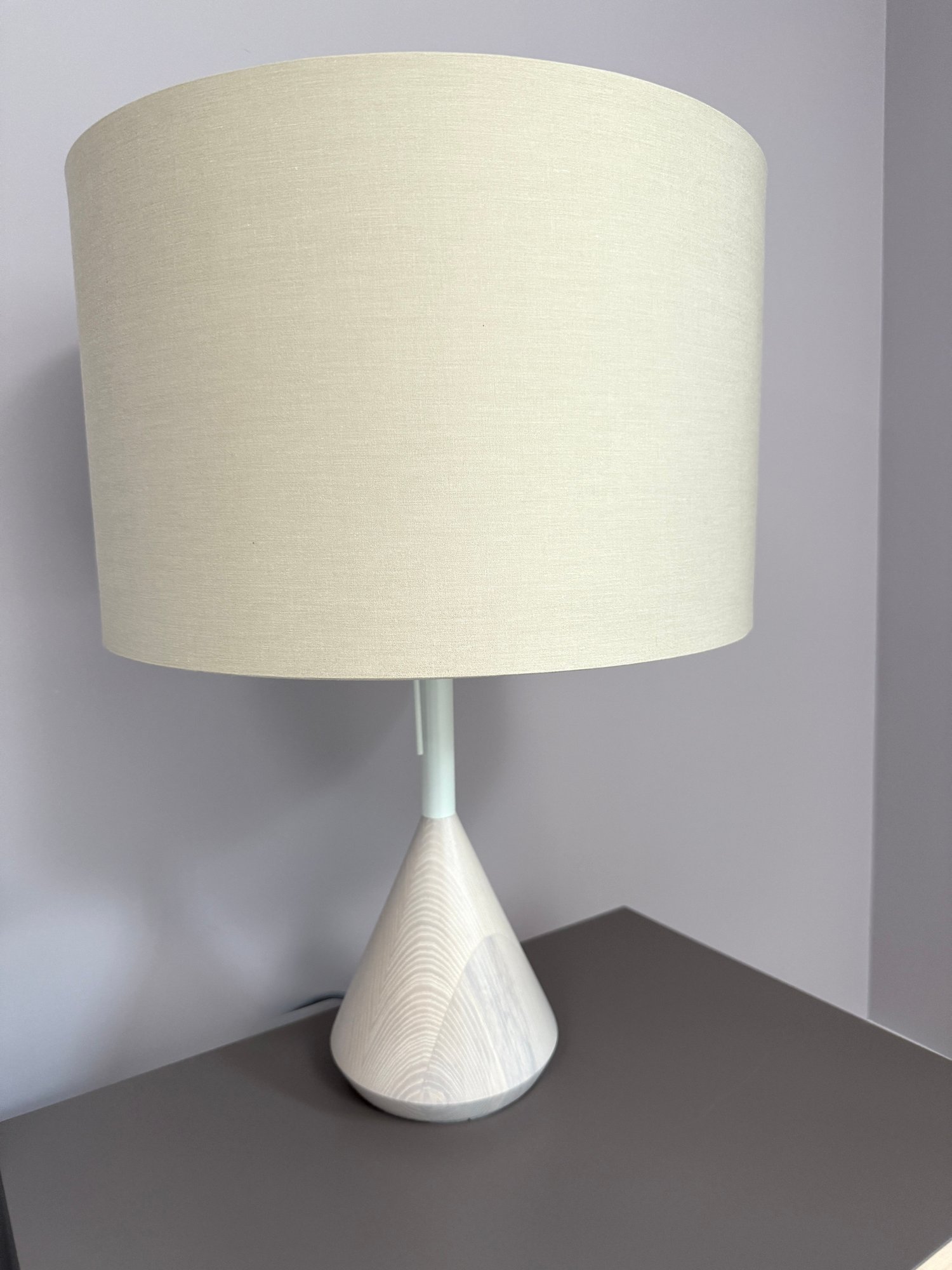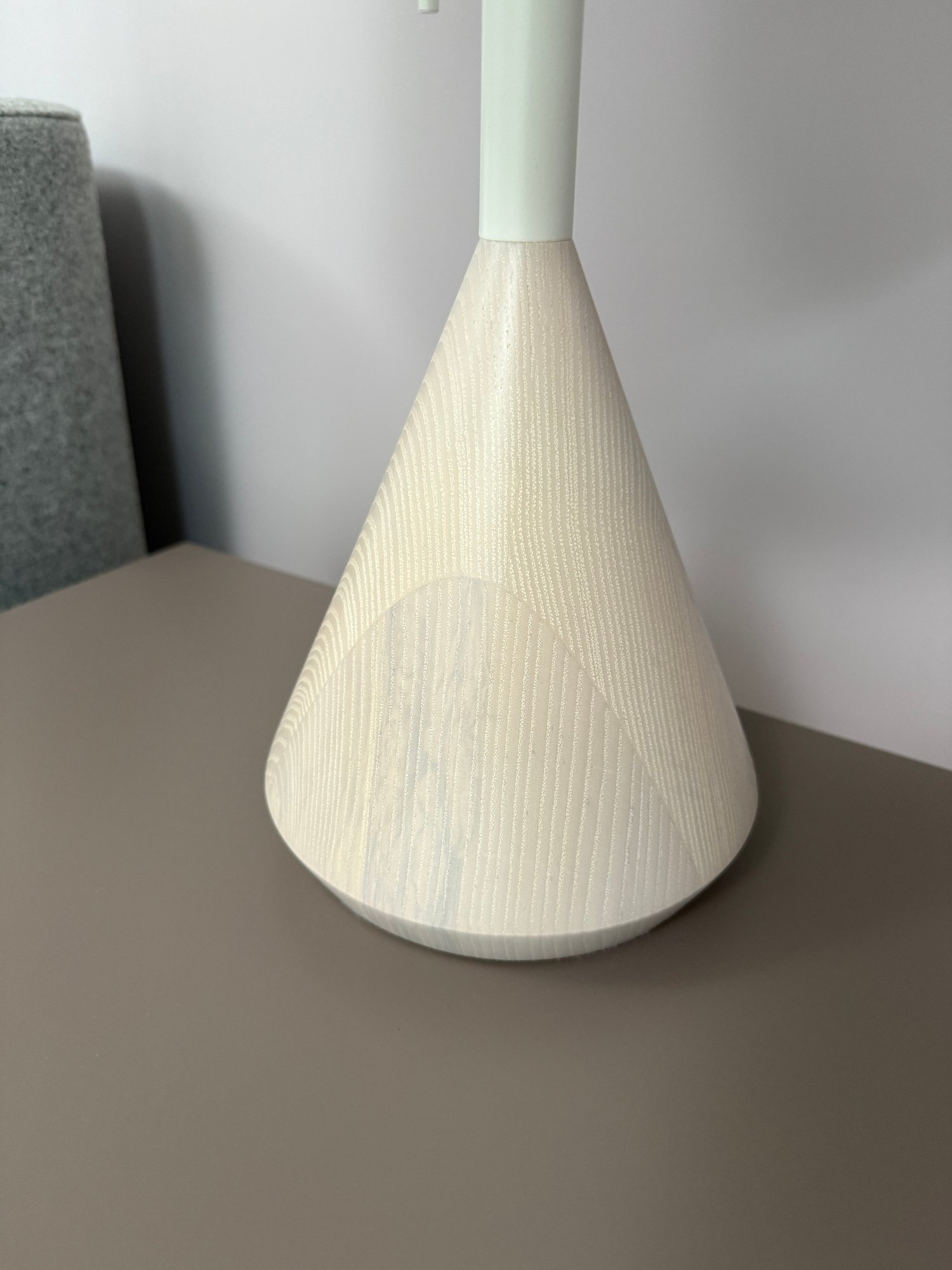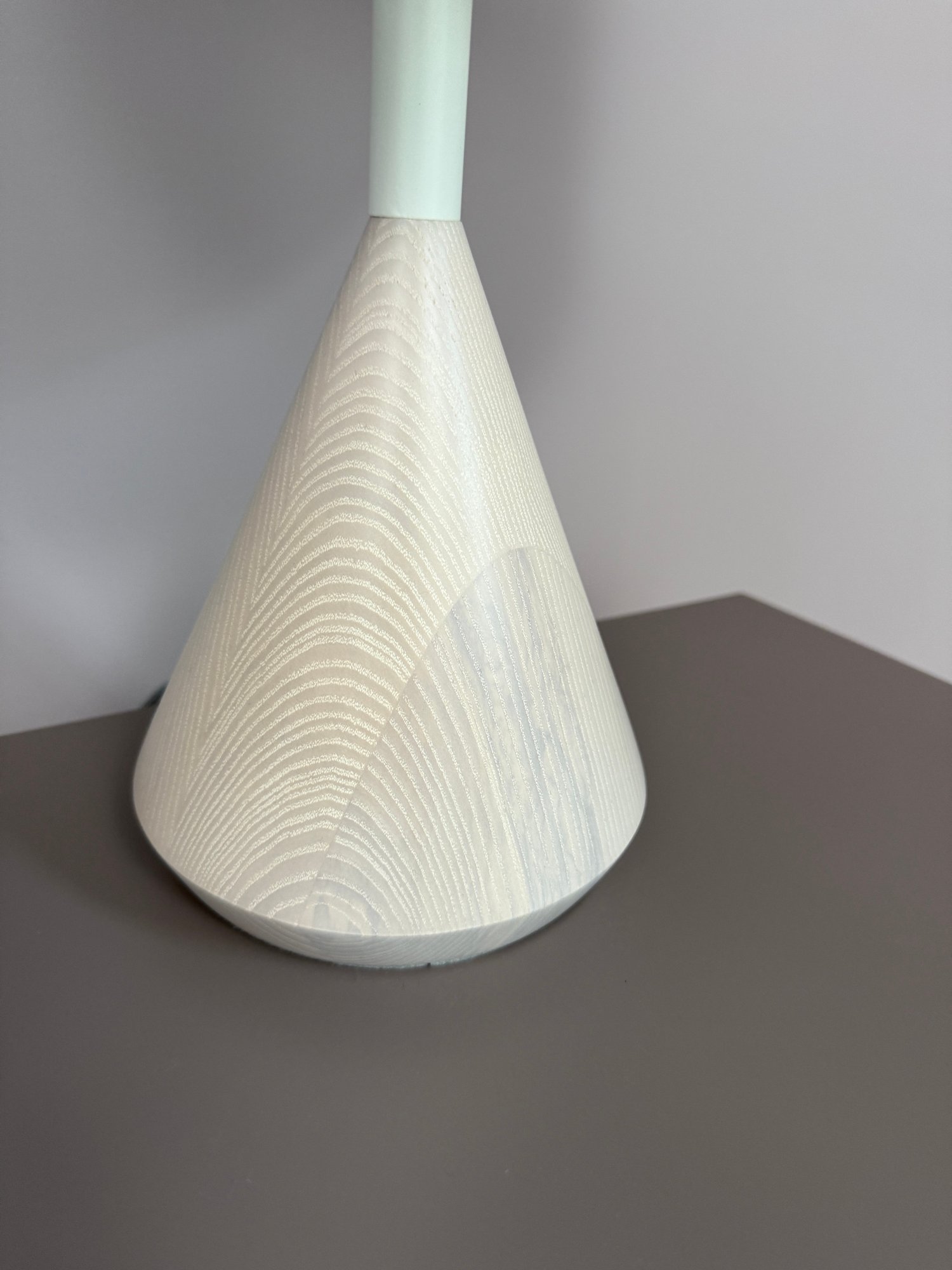 Whitewashed ash base and white powder-coated steel details.