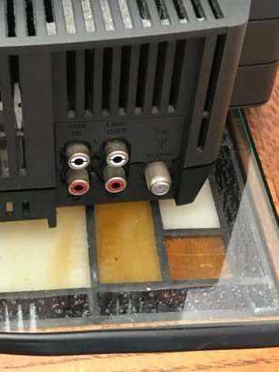 Connectivity: Features rear RCA AUX IN ports (allowing you to connect external devices like Bluetooth adapters or phones), Line Out ports, and a 75-ohm FM antenna connection.