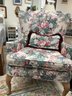 loose cushion and attached back with decorative pillow a-a 34 x 43. Remember Filenes? It actually went out of business in Dec. 2011 and this chair looks like it just came from there.