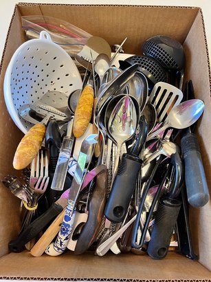Box Lot Of Kitchen Drawer Contents, Box 1 Of 2