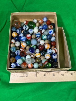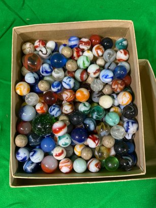 Box Lot Of Vintage Glass & Clay Marbles