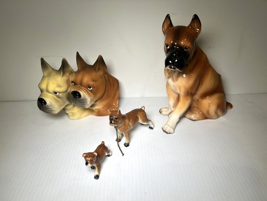 Grouping of vintage Japanese made ceramics all in the form of lovable boxer dogs; two are vases/small planters.