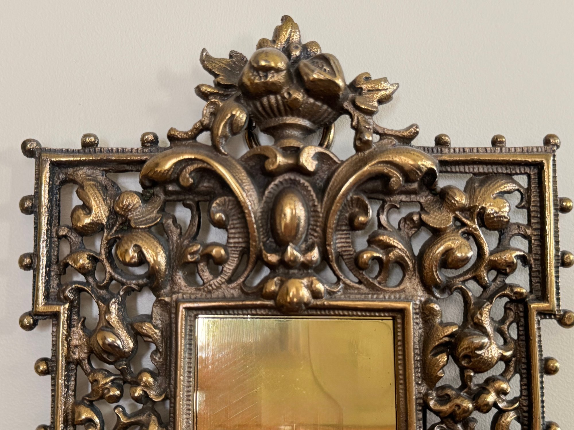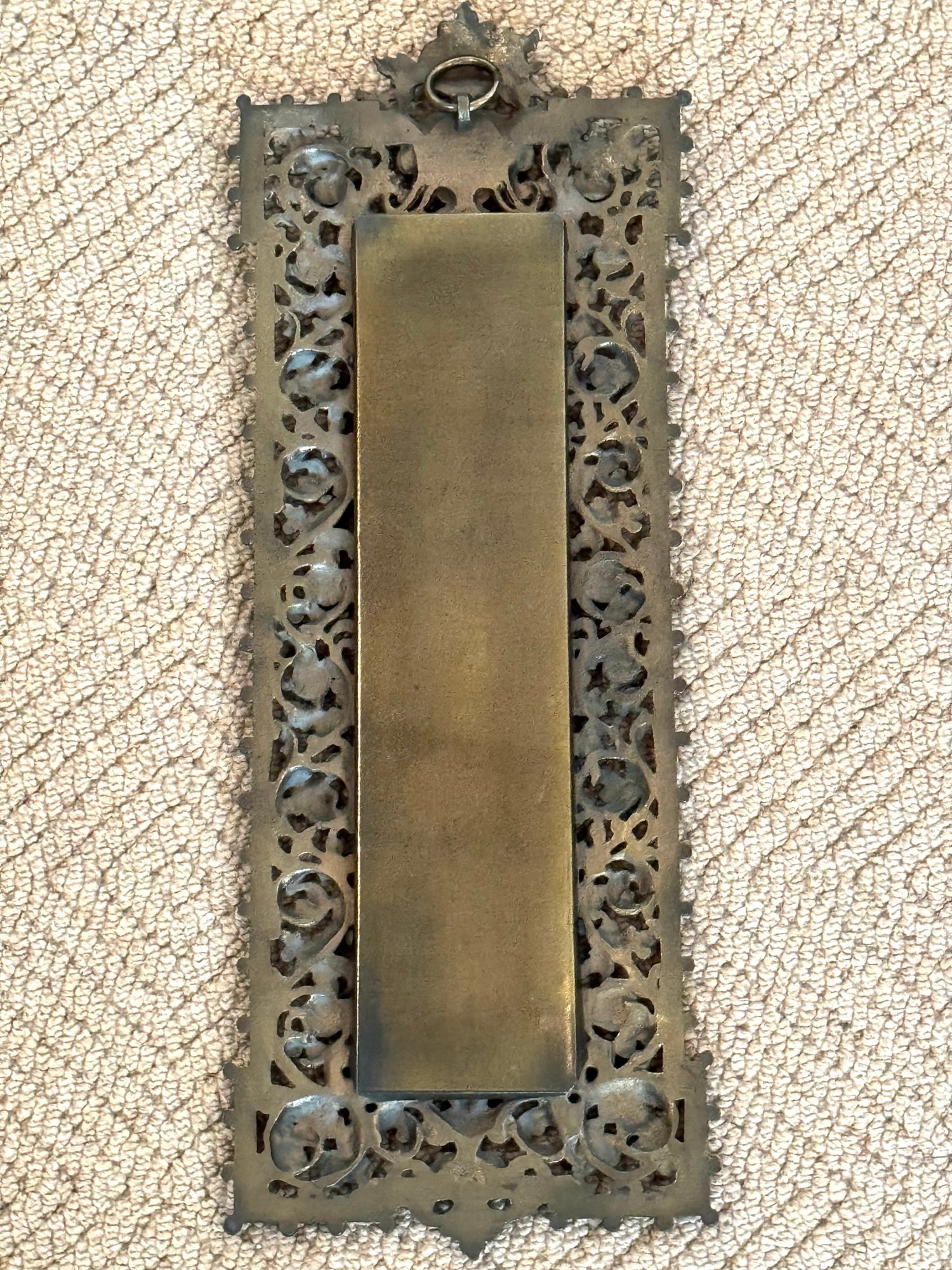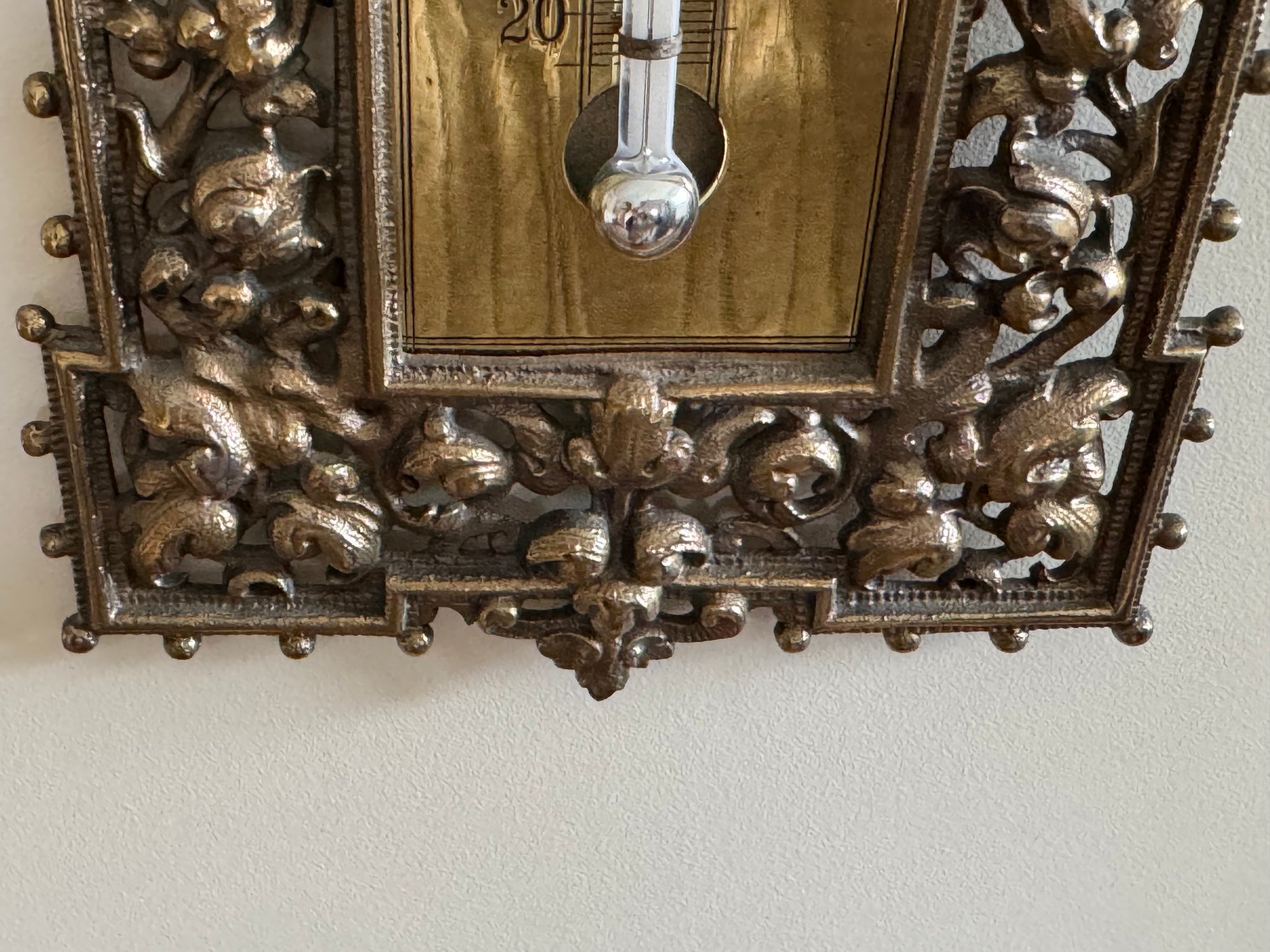 This charming vintage thermometer was purchased out of Southampton antique store and was said by the shop to be Bradley Hubbard, although there is no marking. Note that in person it is very bright shiny brass surrounded by open design. In very good condition. Size 15.5 H x 5.5 W