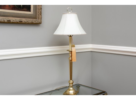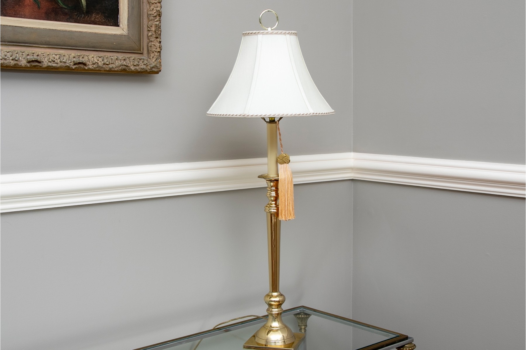 Dimensions: 5" wide x 5" deep x 32" high / shade 12" diameter (at bottom)