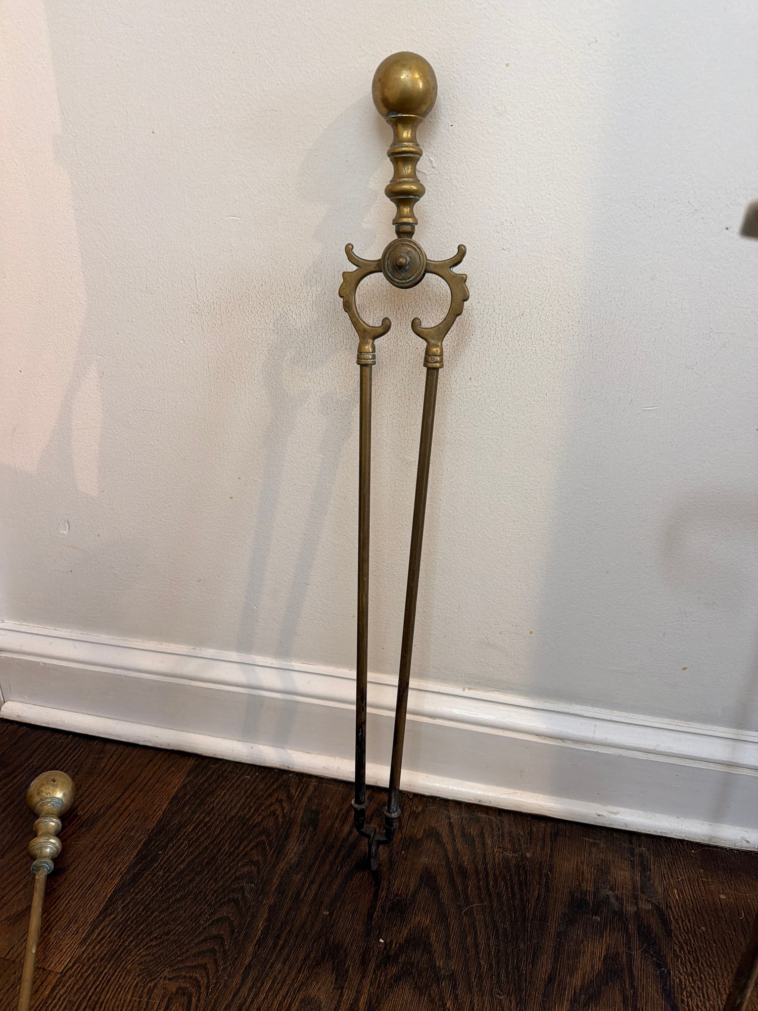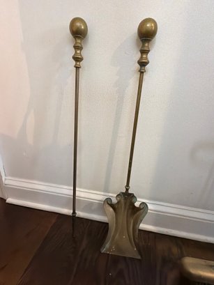 Five piece , brass fireplace tools and holder