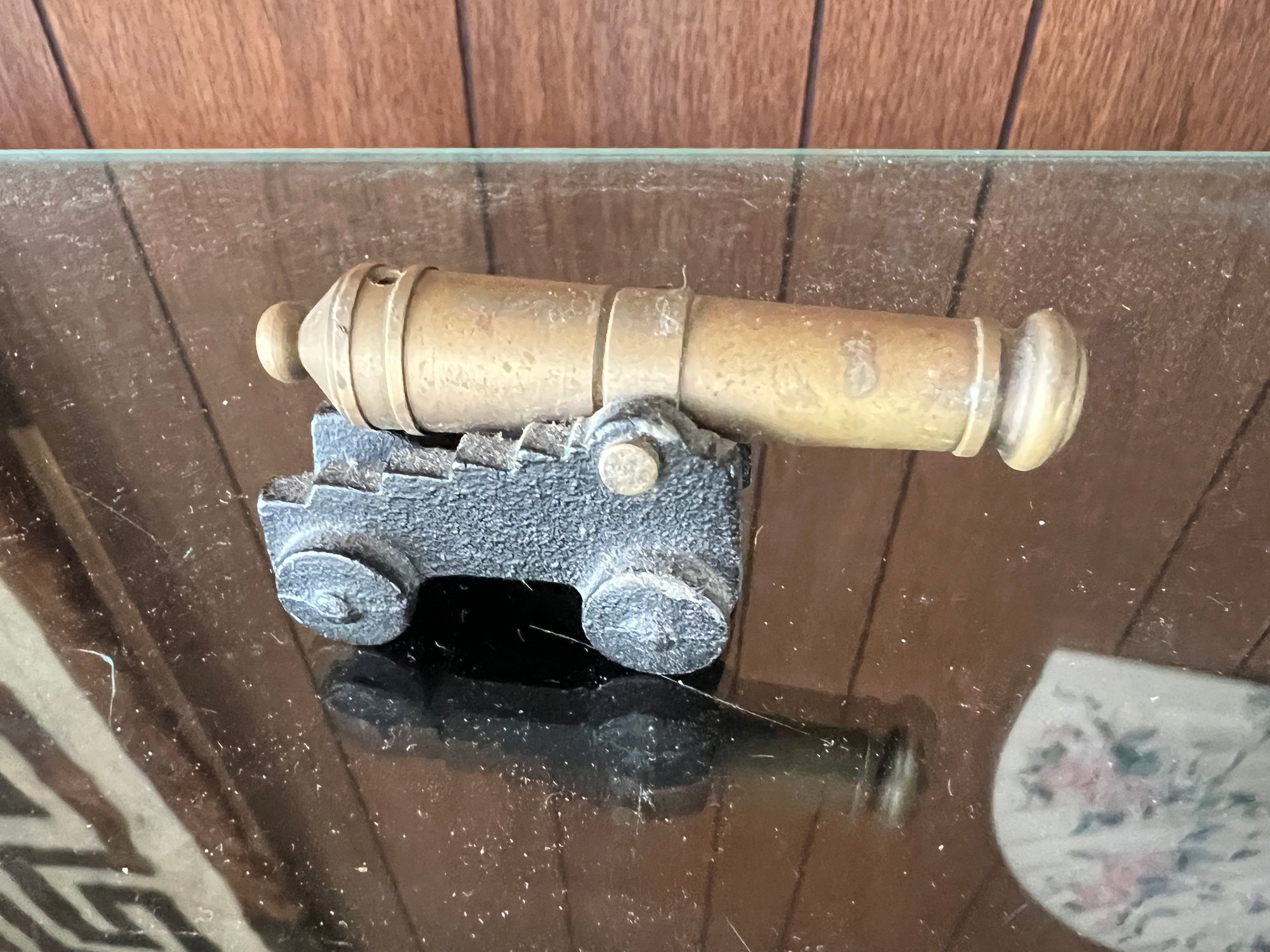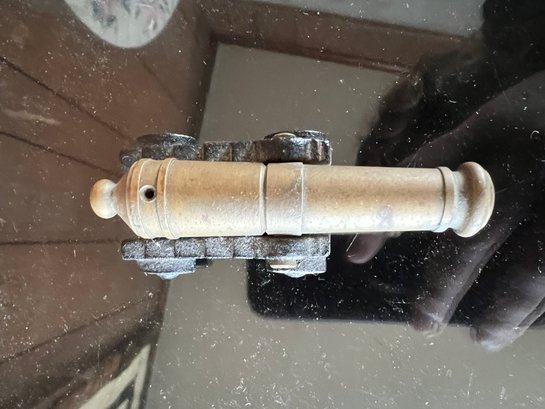 Heavy brass and cast iron canon form replica souvenir of Yorktown, Virginia.