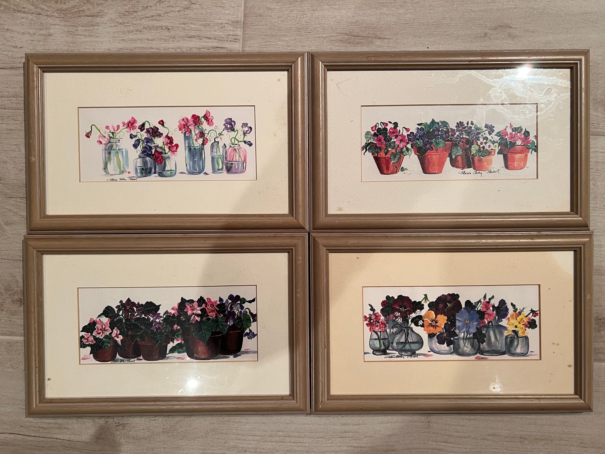 This is a set of four Britt Ryan framed floral watercolor prints.