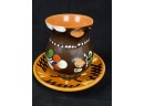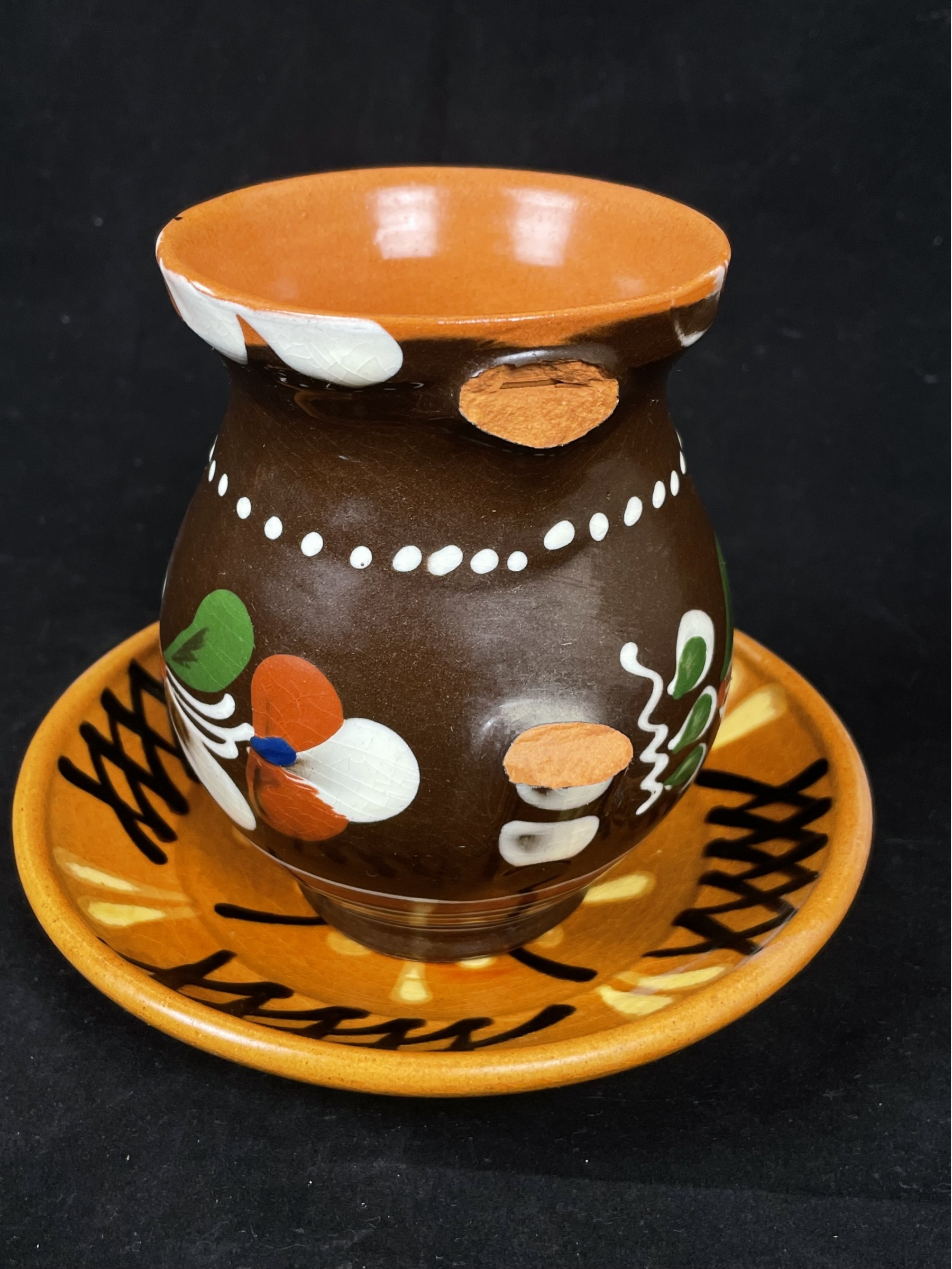 Brown Yellow And Orange Pottery Cup And Saucer
