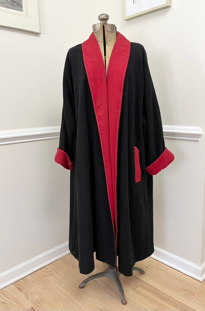 Busceme Long Black Wool Coat With Red Accent M/L 43.5