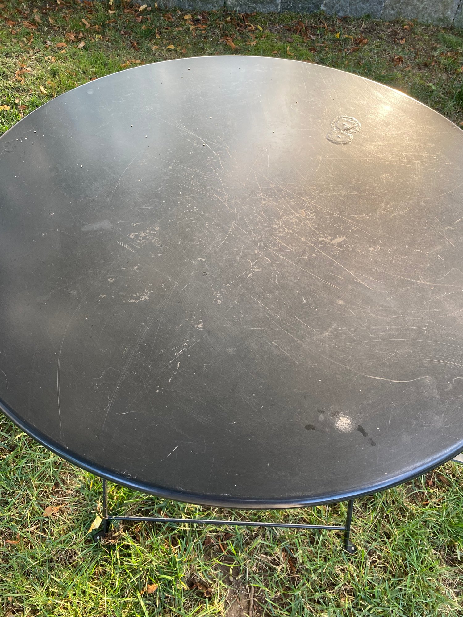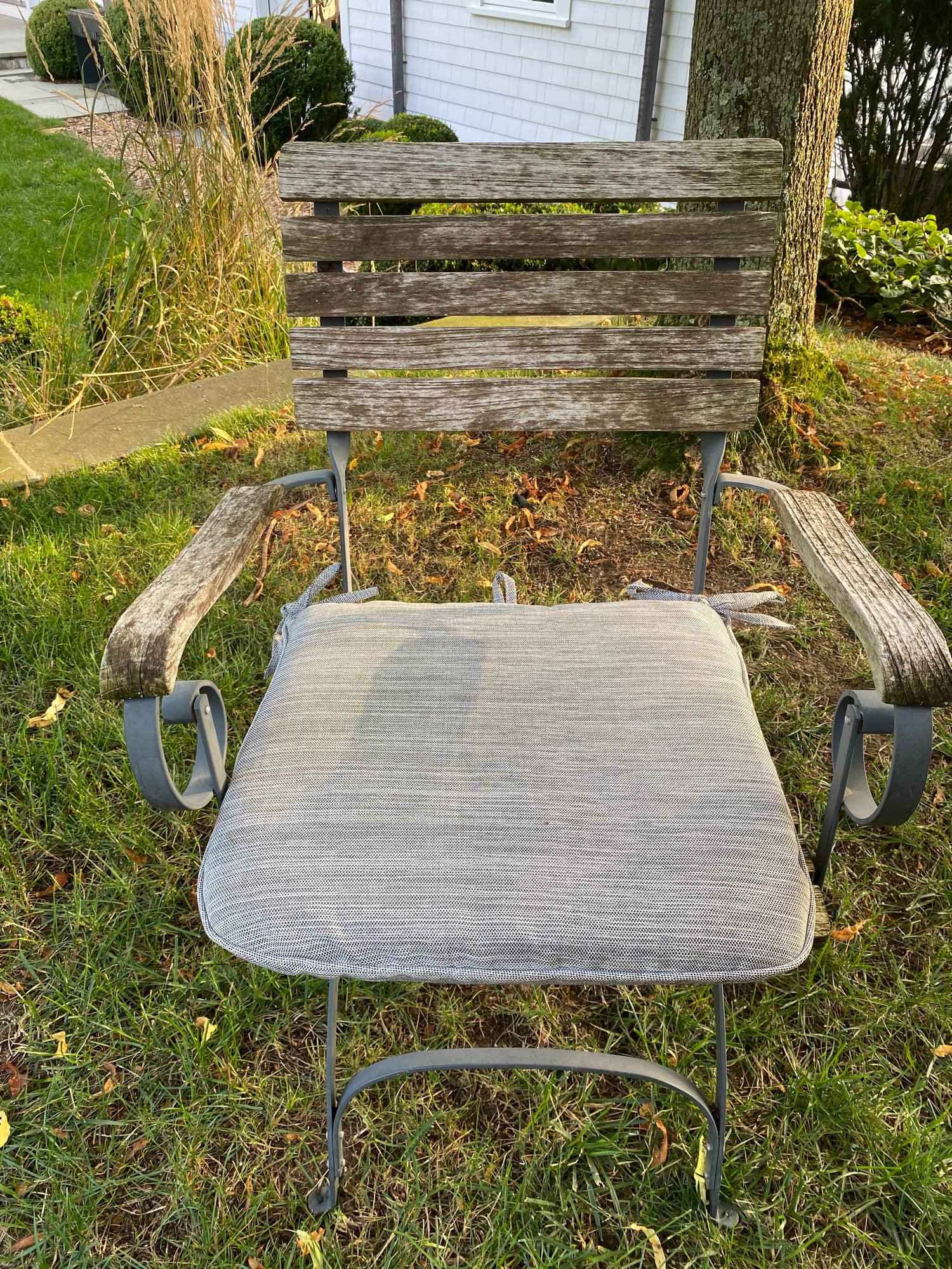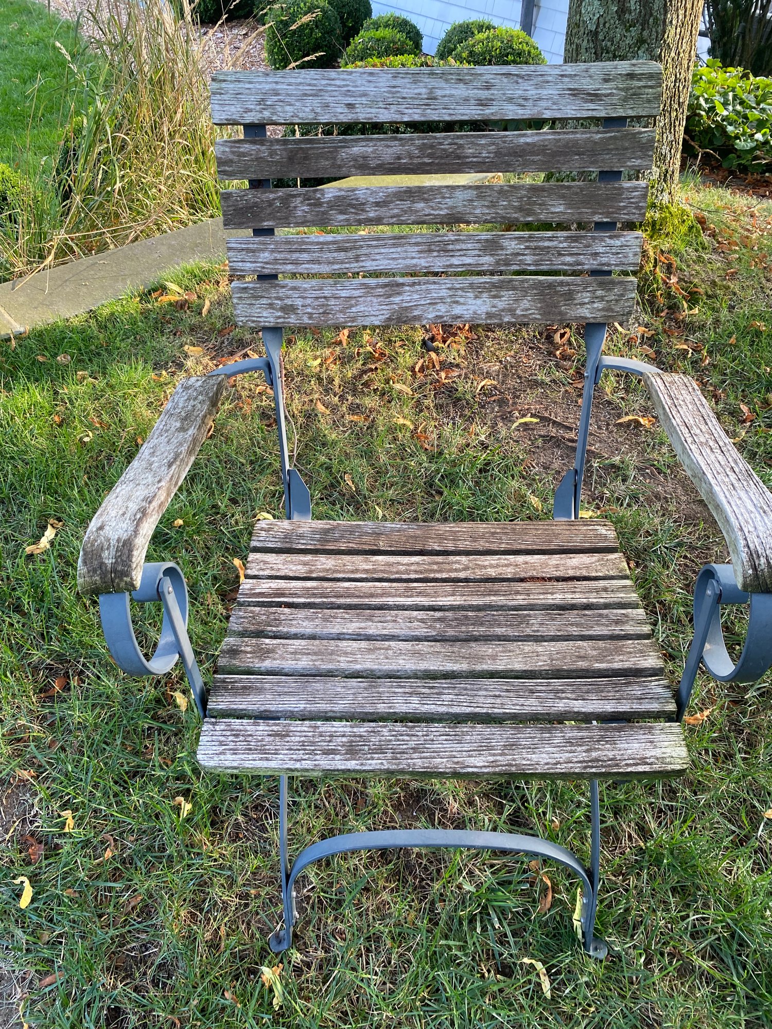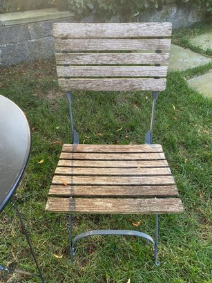 wood chairs - table has some scratching and top wear - and chairs have a slightly rough patina from