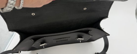 The satchel features a top handle and removeable cross body strap.