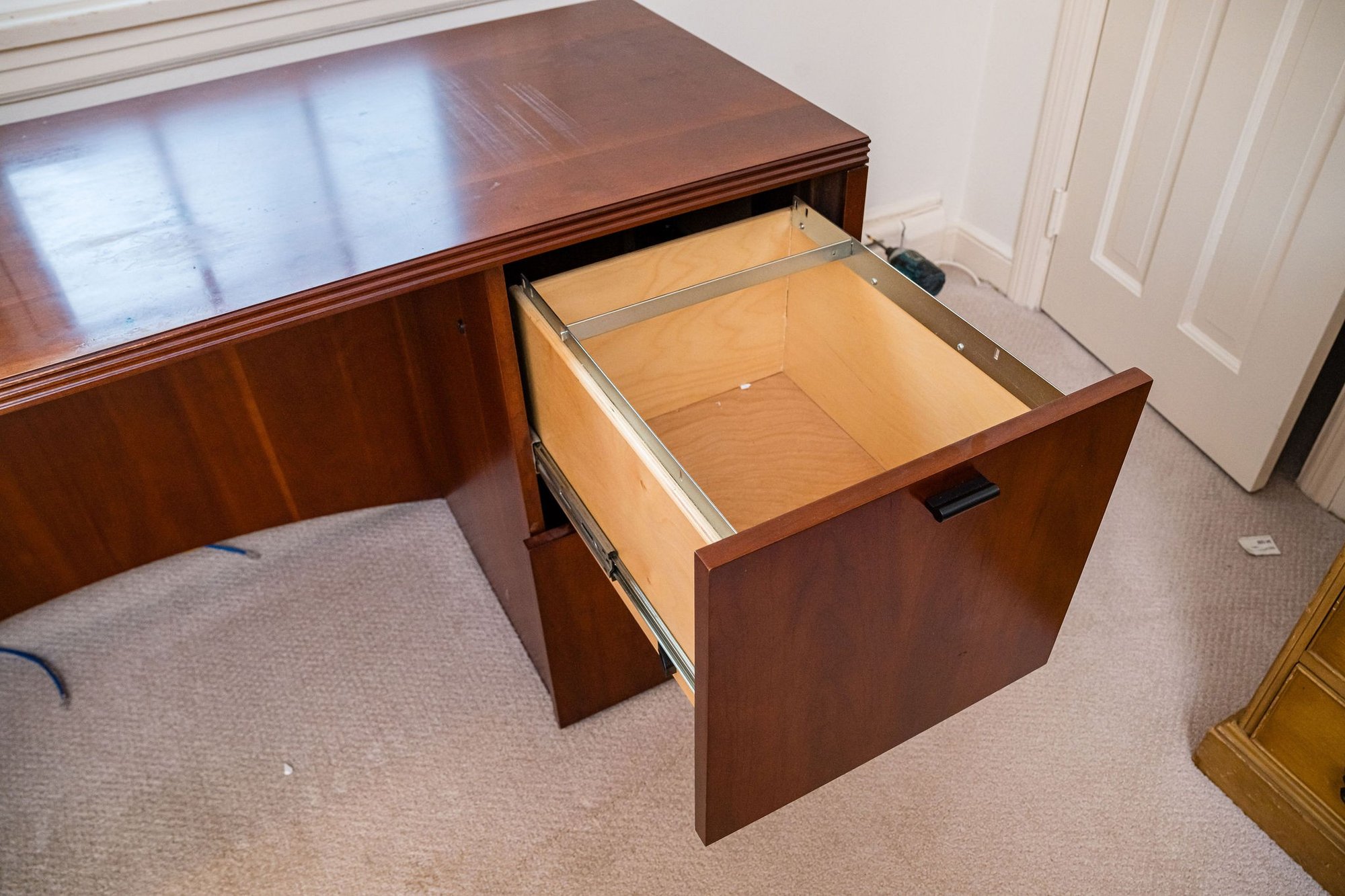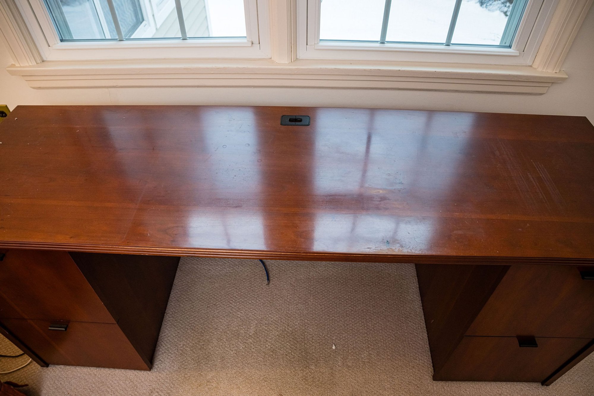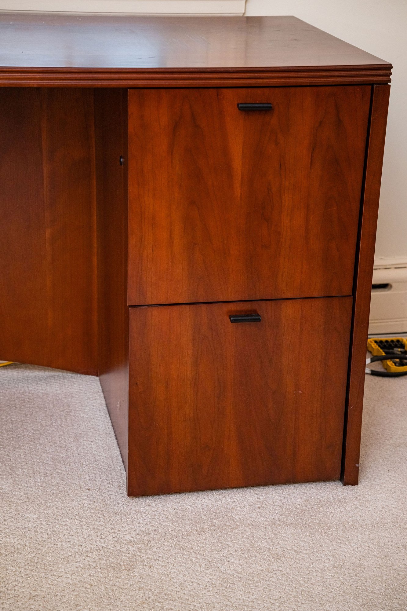 A substantial size desk with roomy file cabinets, light wear is expected.