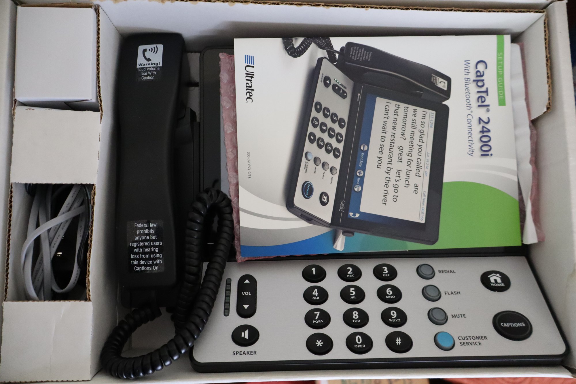 Features Bluetooth capabilities, a large easy touch display with adjustable font sizes & colors, speakerphone, & large buttons