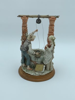 Beautiful sculpture signed G. Armani - this is Giuseppe Armani's "The Wishing Well" from 1981 with original tag and label on the bottom. Excellent condition, no chips or cracks found. Believed to be from Florence Italy.