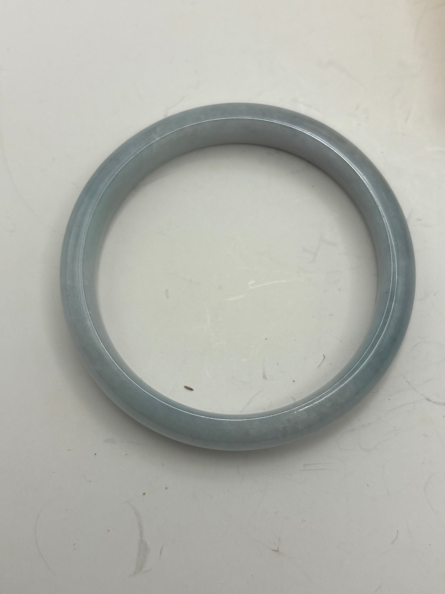 Elegant green stone bangle bracelet with a smooth, polished finish and classic rounded profile. The stone displays a soft celadon-to-grayish green tone with natural-looking translucency and subtle internal variations, giving it a timeless, minimalist appeal.