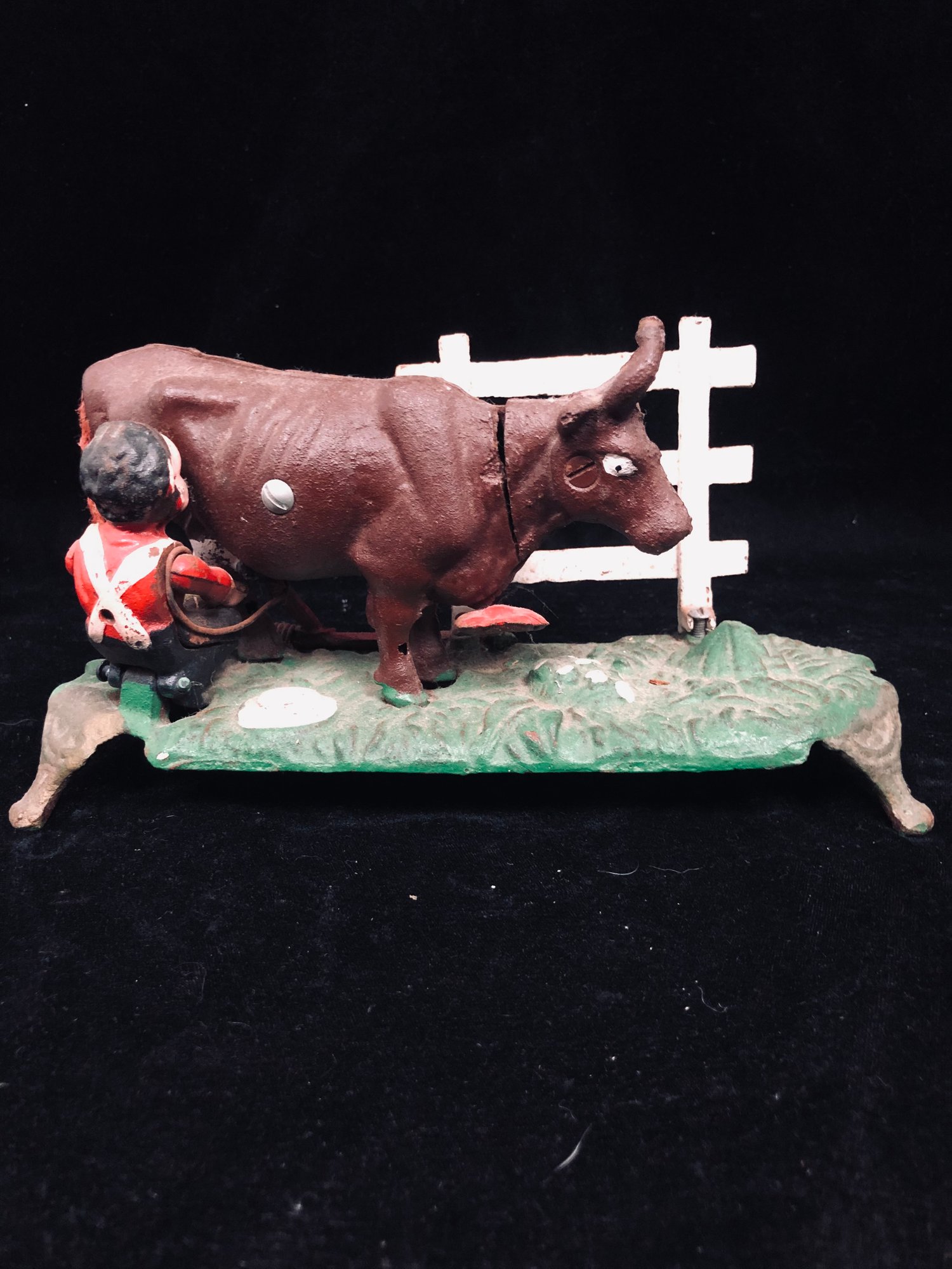 Cast Iron Mechanical Bank Kicking Milking Cow Bull